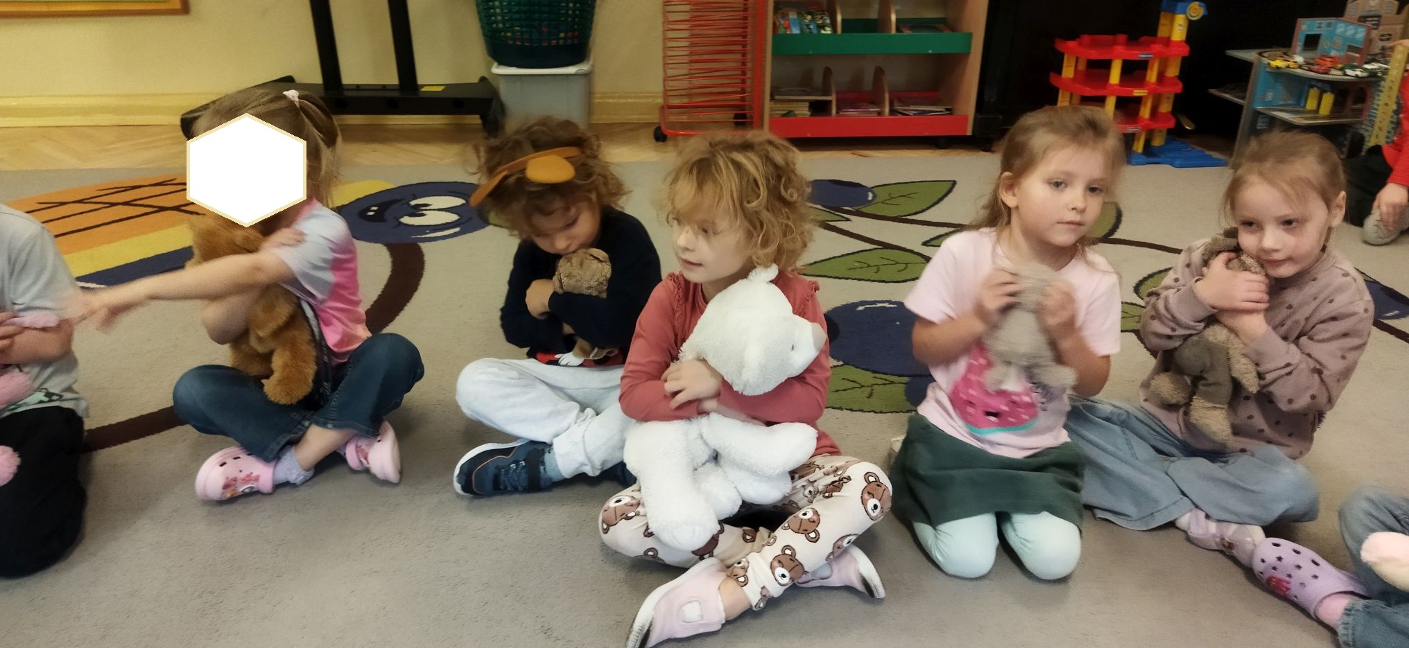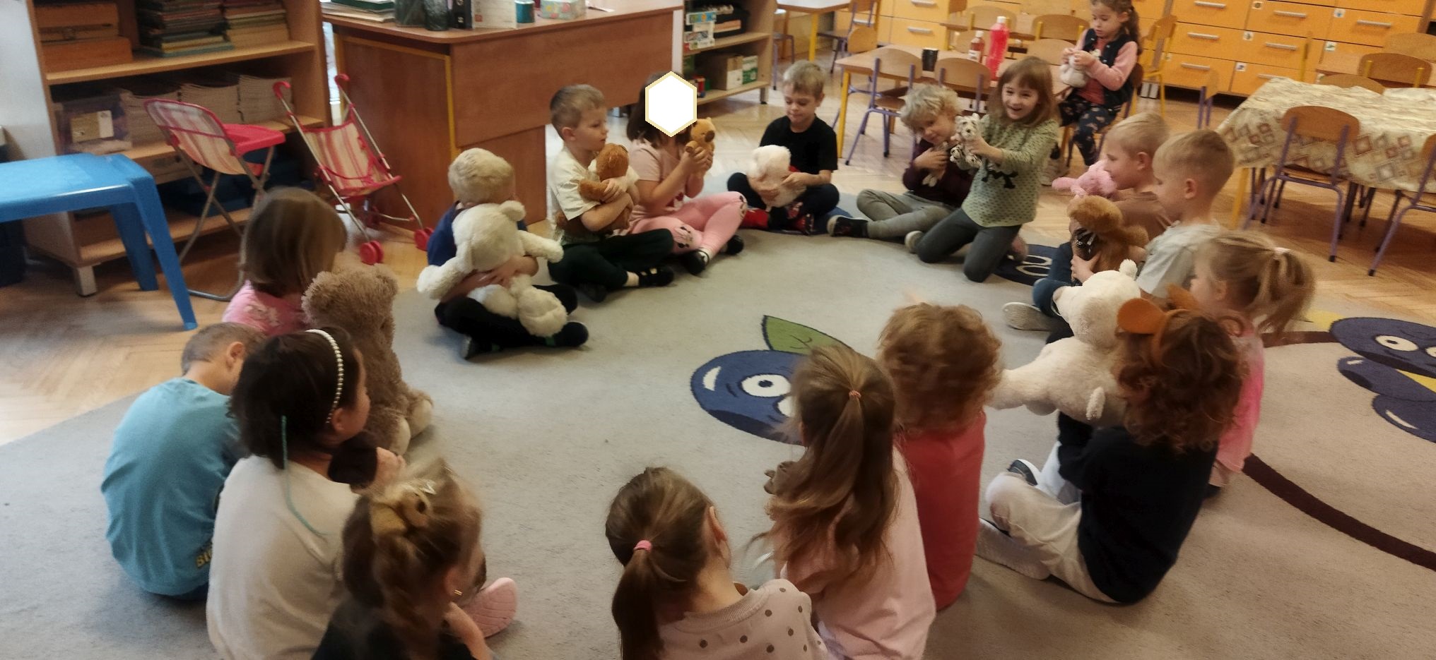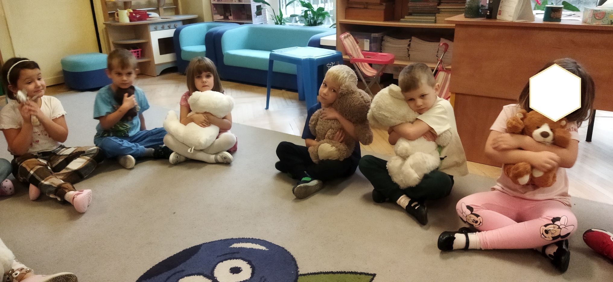 Tego dnia każde dziecko przyniosło z domu swojego ulubionego misia. Przedszkolaki opowiadały o swoich pluszowych przyjaciołach, mówiły, jak mają na imię. Po zabawie słownej odbyły się zabawy integracyjne z wykorzystaniem misiów.