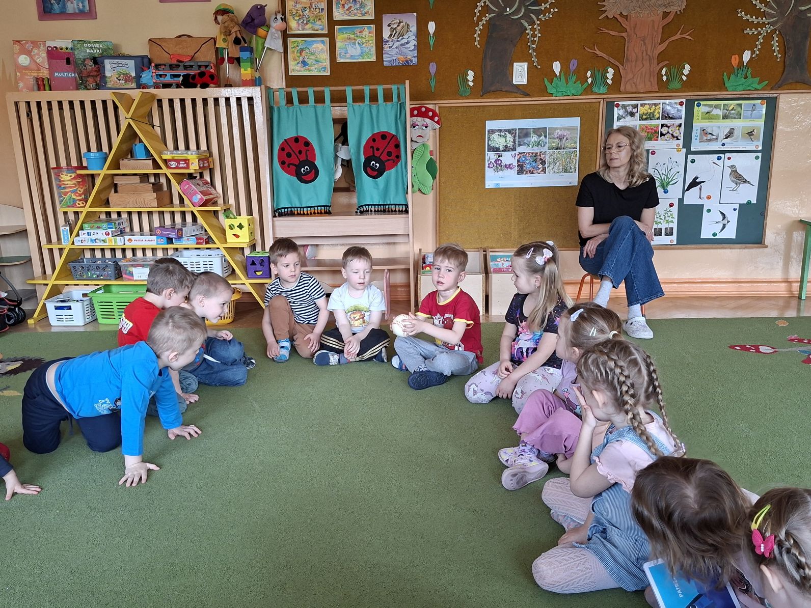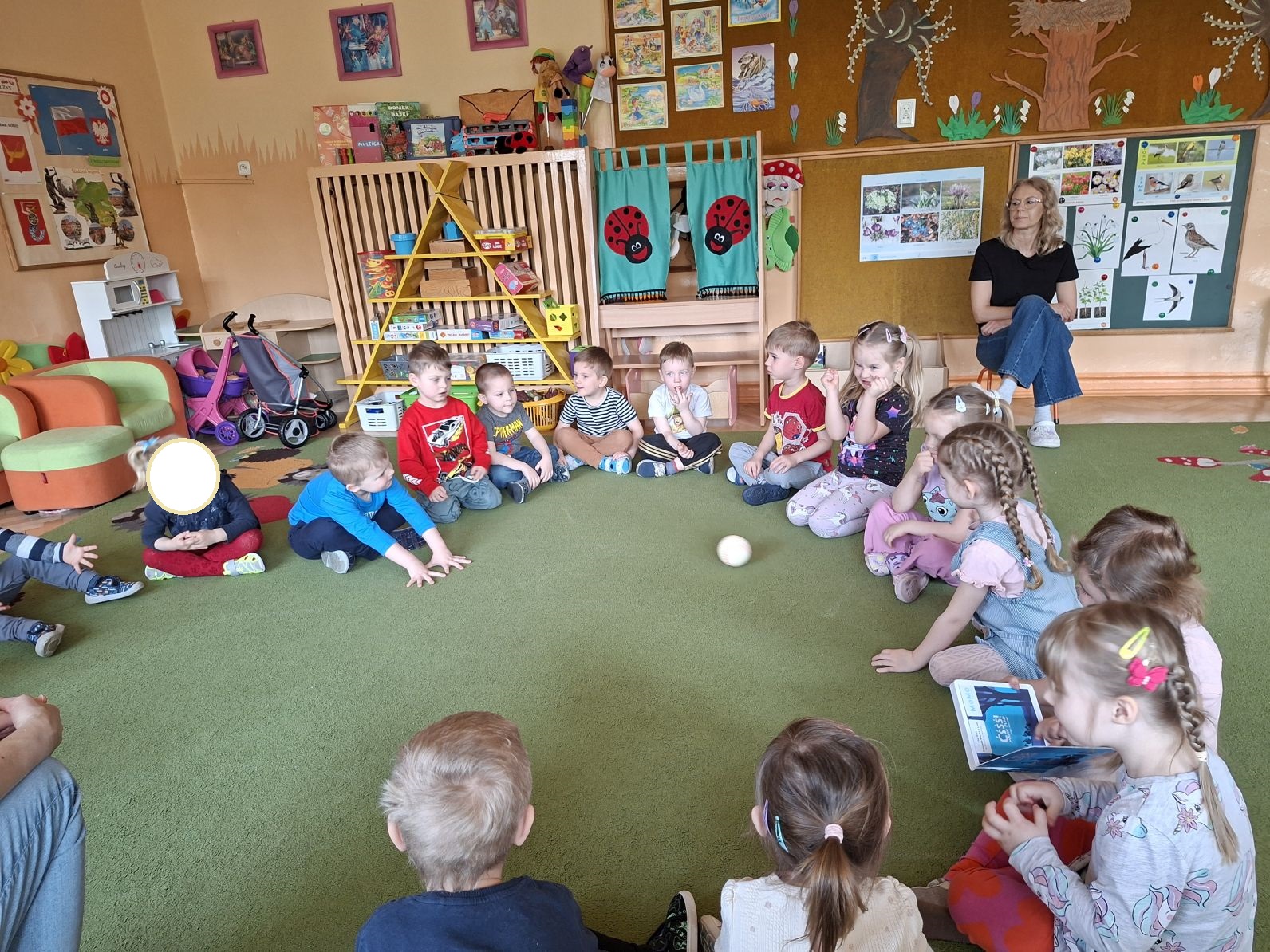 Po wysłuchaniu książeczek, mama Damianka zorganizowała krótką zabawę z piłeczką, podczas której chętne dzieci mówiły kogo i jak bardzo kochają.