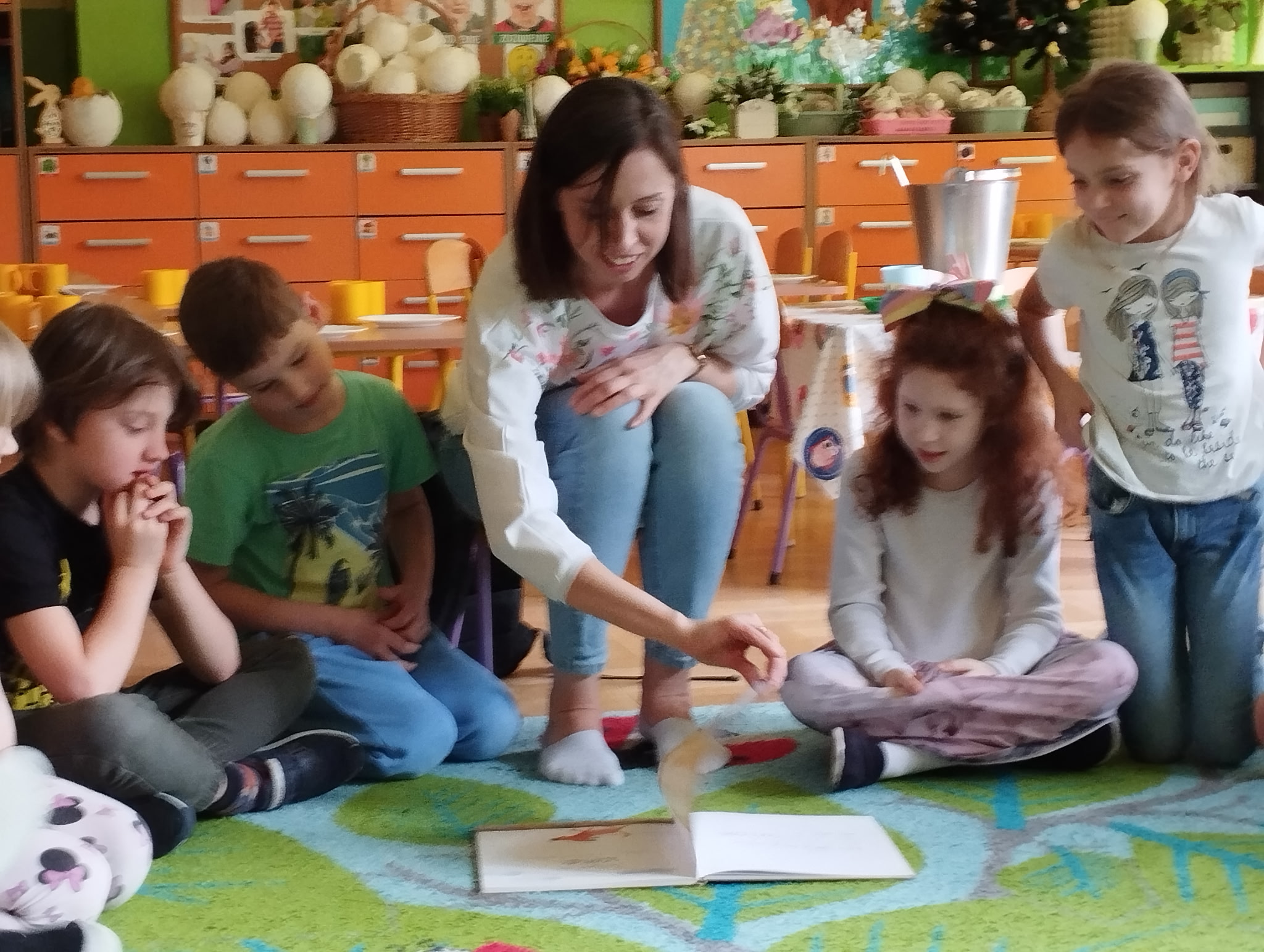W ramach głośnego czytania zaproponowała przedszkolakom wysłuchanie kilku opowiadań. Po przeczytaniu książeczek pani Anna poprosiła dzieci, aby powiedziały, kogo kochają i jak mocno.