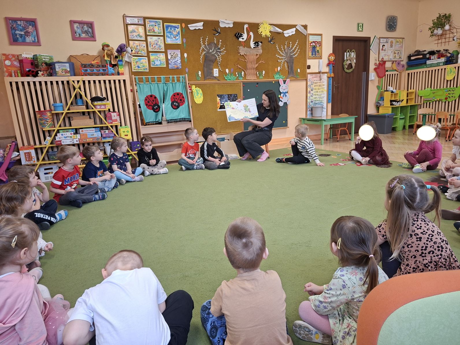 Tym razem była to mama Mikołaja Ś., która przyniosła ze sobą trzy ciekawe książeczki. Były to: "Zuchozaur", "Najwyższa na świecie wieża z książek" oraz "Pan Brumm tego nie rozumie". Dzieci wysłuchały opowiadań z zapartym tchem.