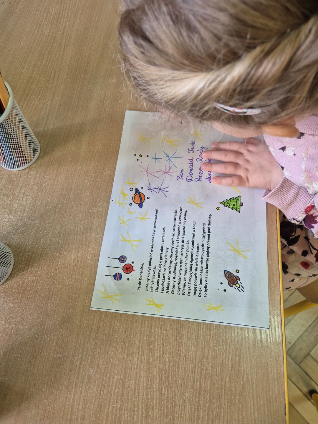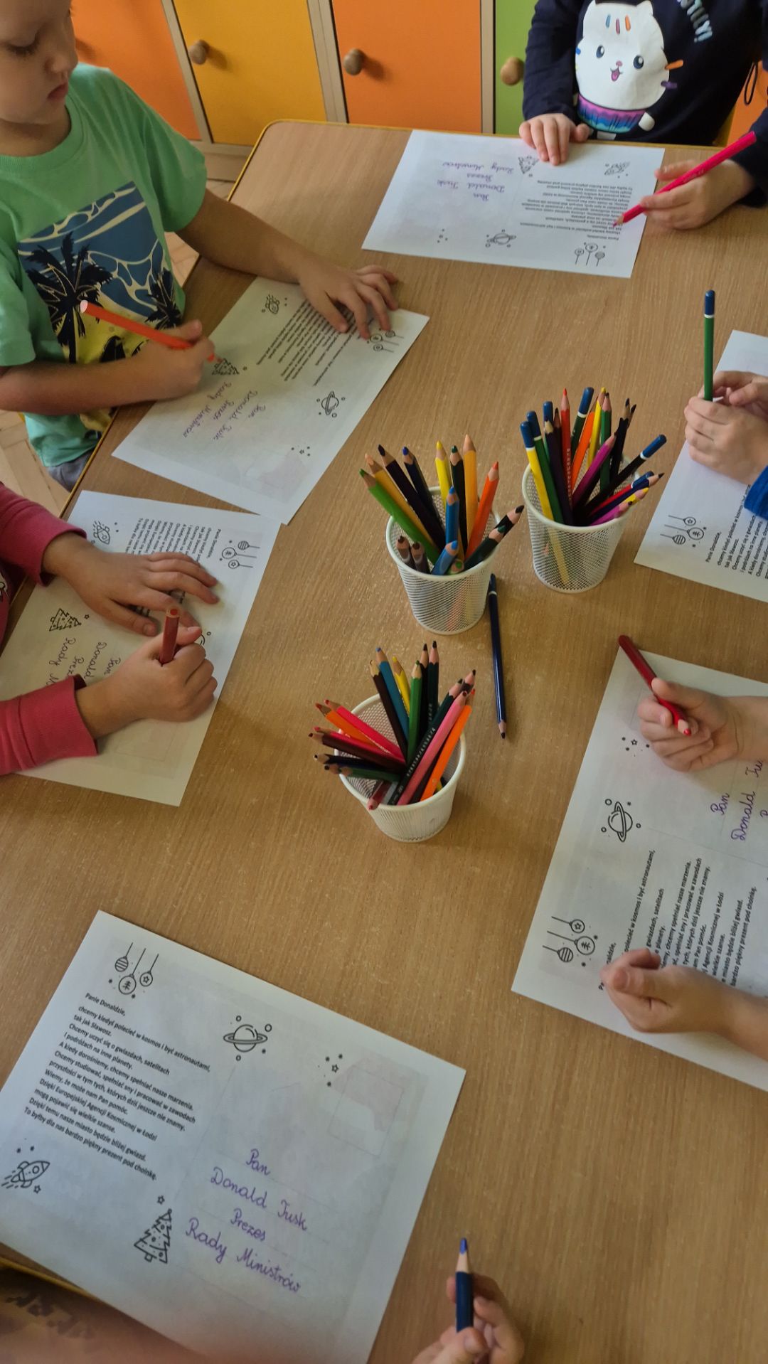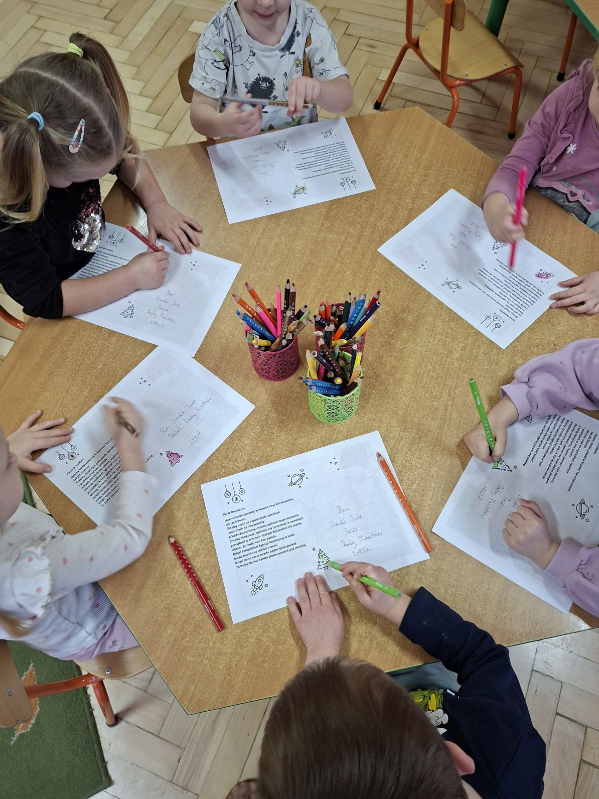 Dzieci z każdej grupy wiekowej kolorowały dedykowaną kartkę z treścią listu, starsze przedszkolaki dorysowywały również swoje obrazki. Następnie podpisane i zaadresowane do pana Premiera kartki zostały zapakowane i wysłane na podany adres do Prezesa Rady Ministrów.