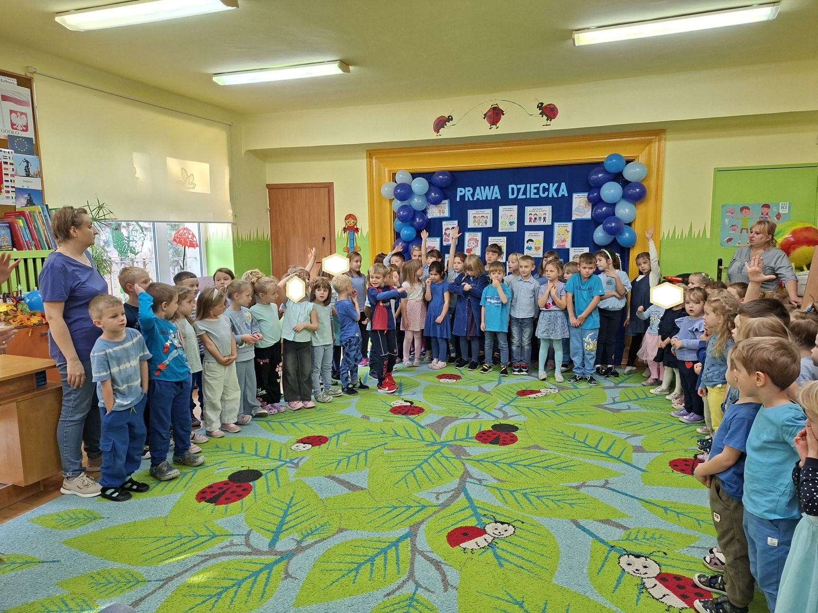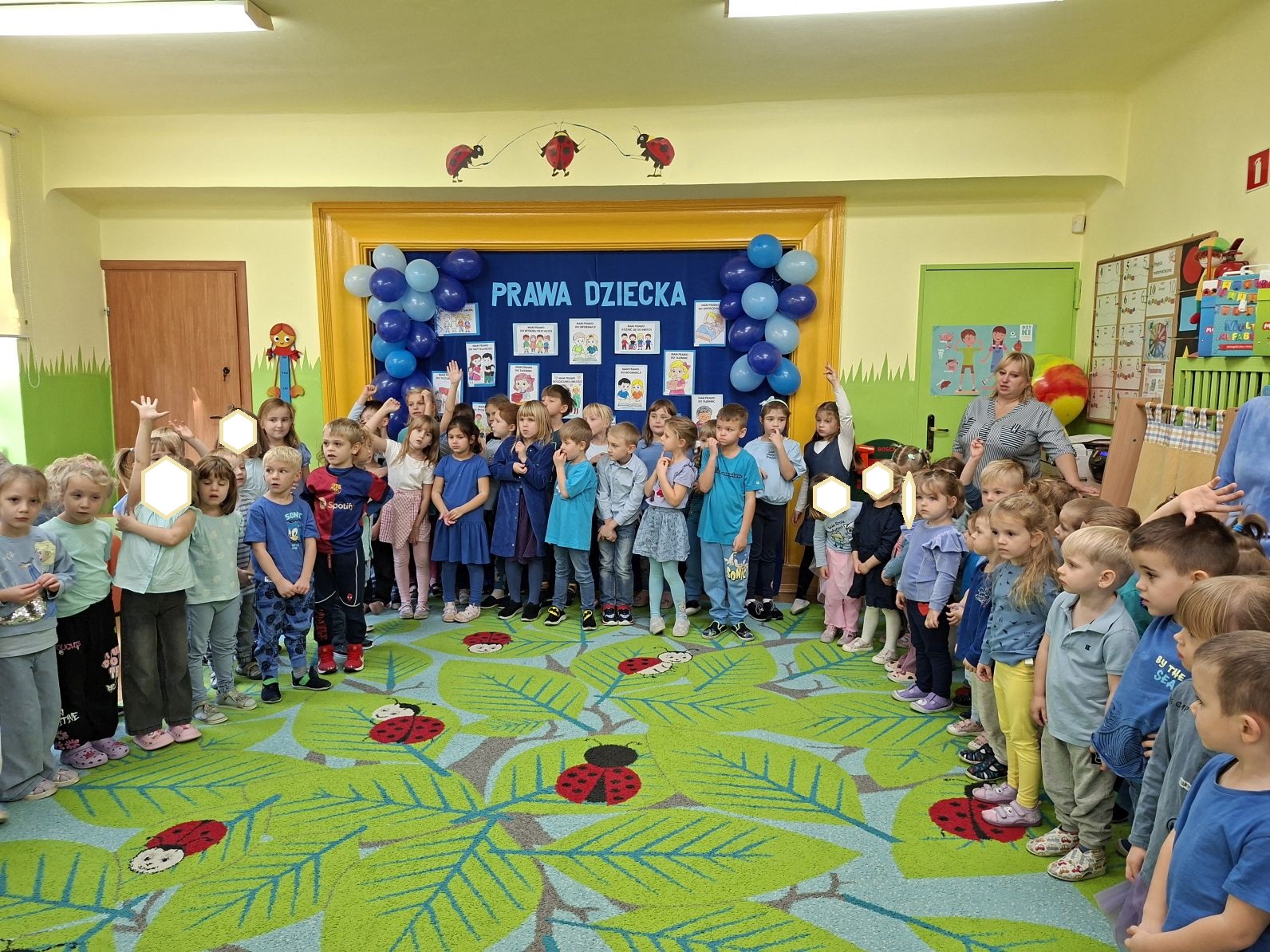 Nasze przedszkole włącza się w obchody Dnia Praw Dziecka. Przedszkolaki ze starszych grup prezentują wierszyki o prawach dziecka, natomiast dzieci ze wszystkich grup śpiewają wspólnie piosenkę - hymn "O prawach dziecka". Biorą też udział w quizie nt. praw dzieci na całym świecie, wiedzą również, że oprócz praw, dzieci mają również obowiązki, z których powinny się wywiązywać. Symbolem tego dnia jest kolor niebieski, dlatego też wszyscy ubrani są na niebiesko lub mają niebieski element garderoby.