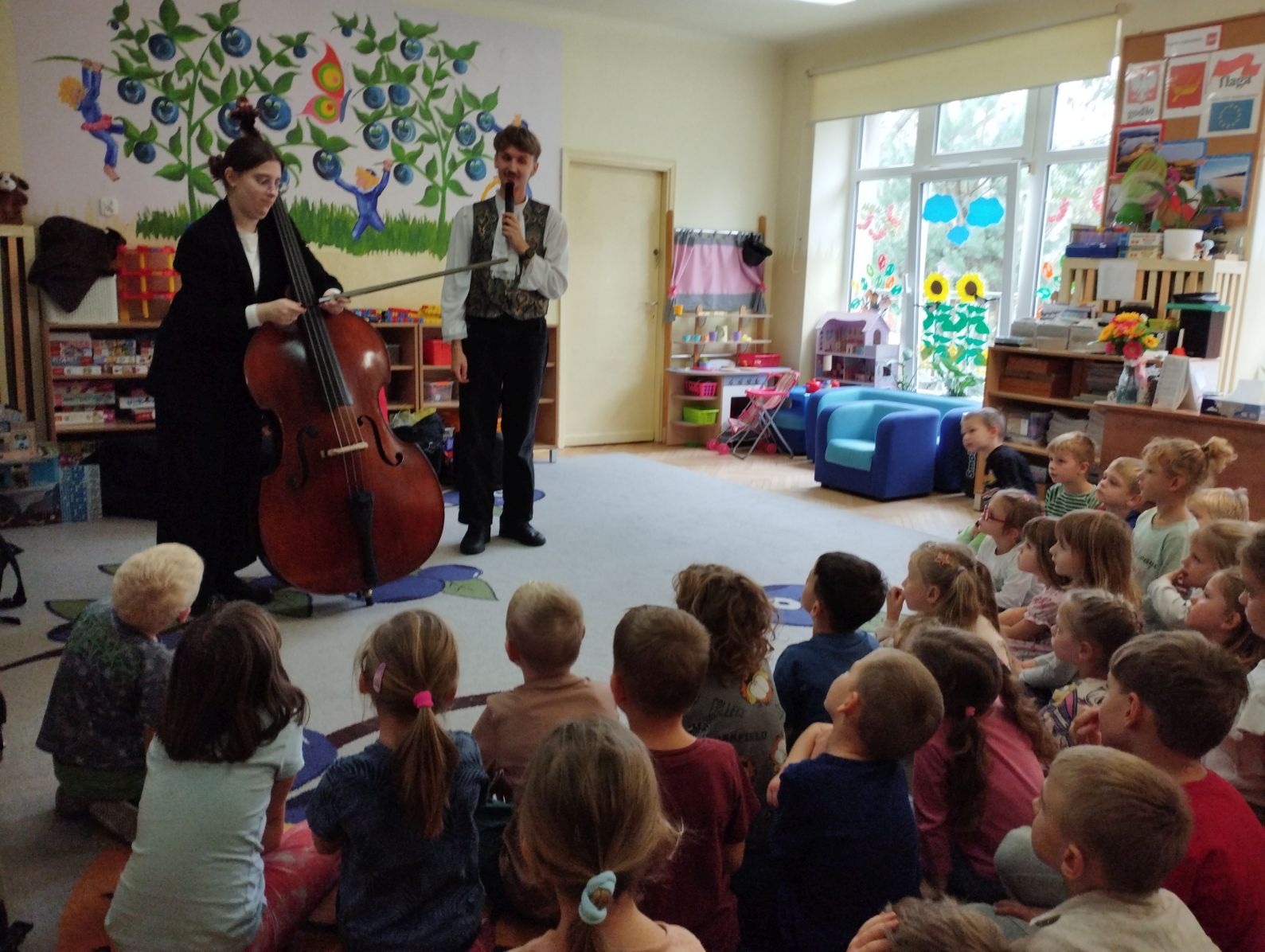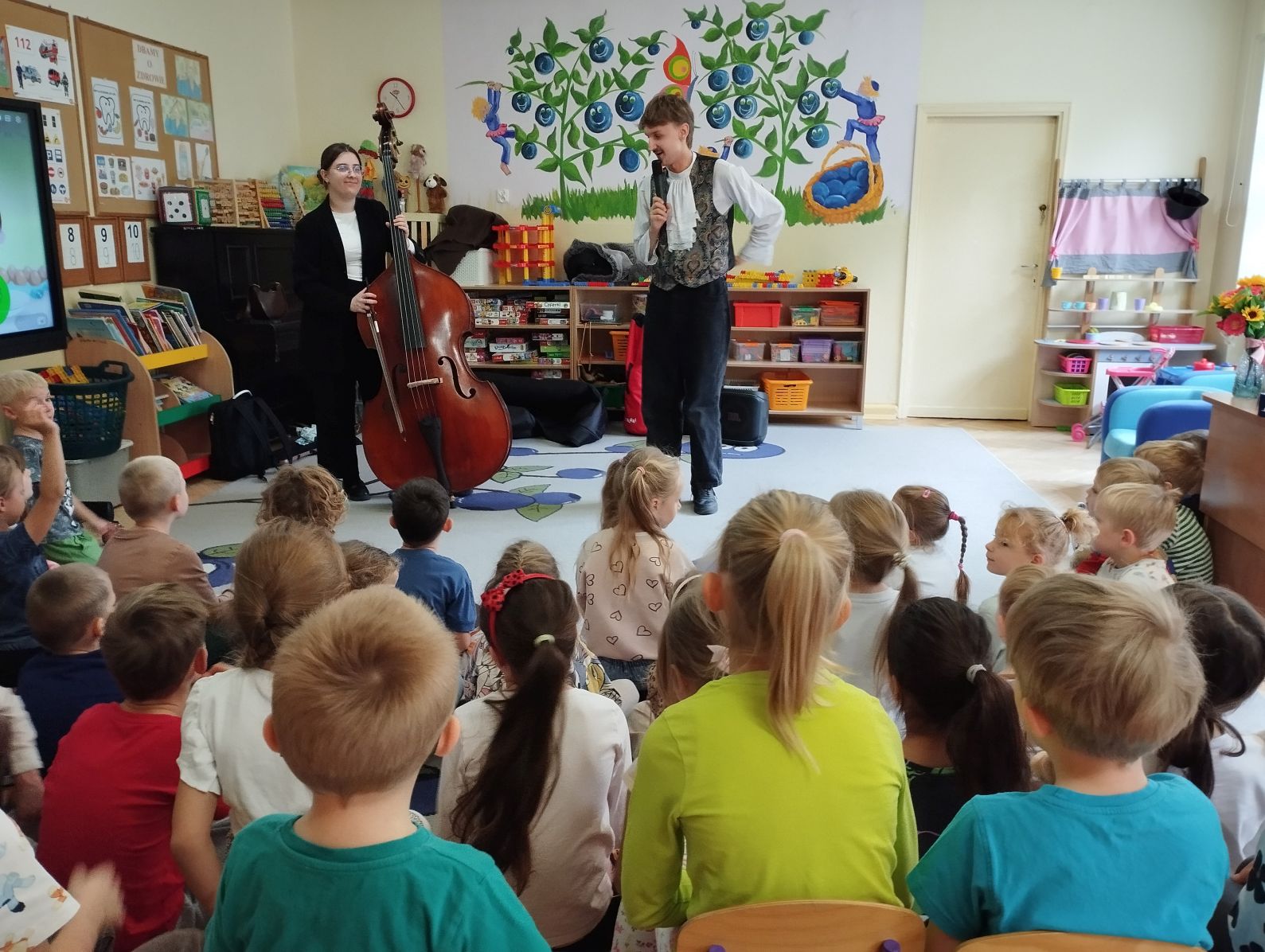 Podczas koncertu dzieci poznały nowy instrument jakim jest kontrabas. Dowiedziały się do jakiej grupy instrumentów należy, w jaki sposób na nim się gra oraz jaki wydaje dźwięk. Miały również możliwość spróbowania swoich sił w grze na instrumentach.
