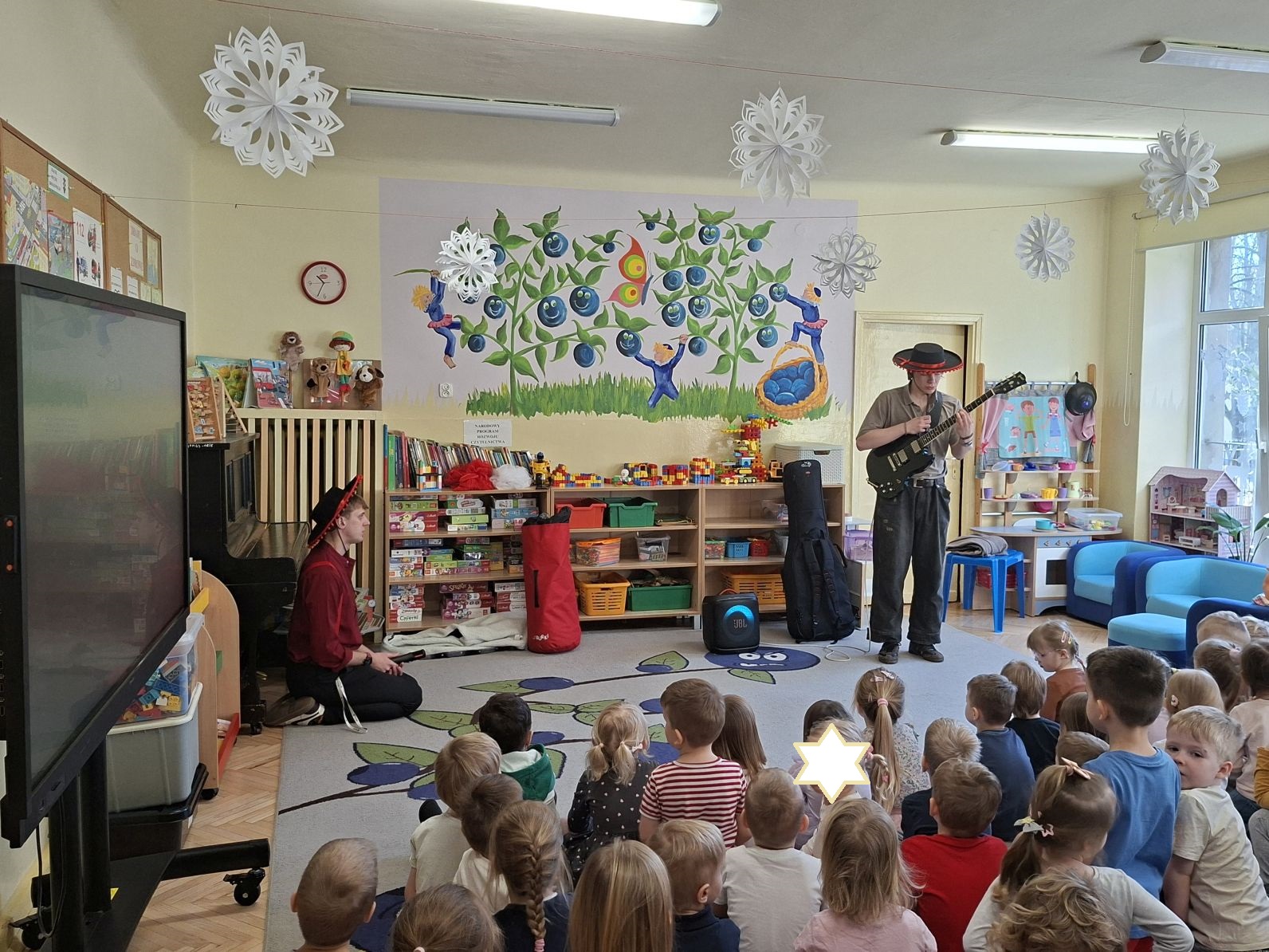 Podczas tego spotkania dzieci poznały wygląd oraz brzmienie gitary elektrycznej. Wysłuchały, a także wykonały układ taneczny do hiszpańskich rytmów, między innymi flamenco granych na tym instrumencie.