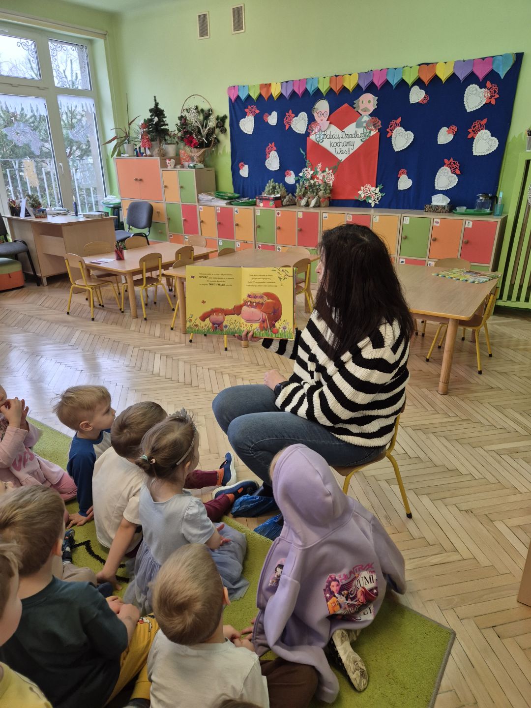 Podczas tego spotkania przedszkolaki wysłuchały opowiadanie pod tytułem "Cierpliwości Hipciu - dasz radę"