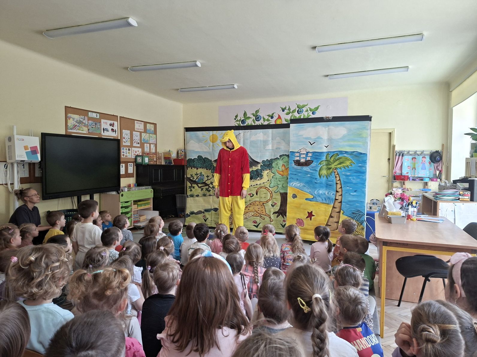 Przedszkolaki obejrzaly przedstawienie pod tytułem "Kubuś Puchatek", opowiadające o przygodach sympatycznego misia i jego przyjaciół.