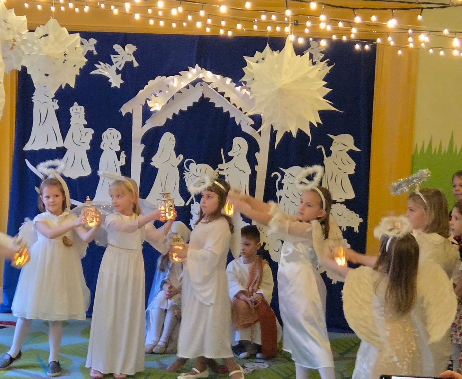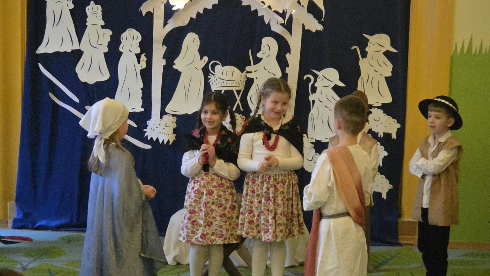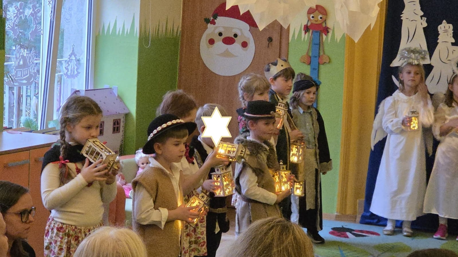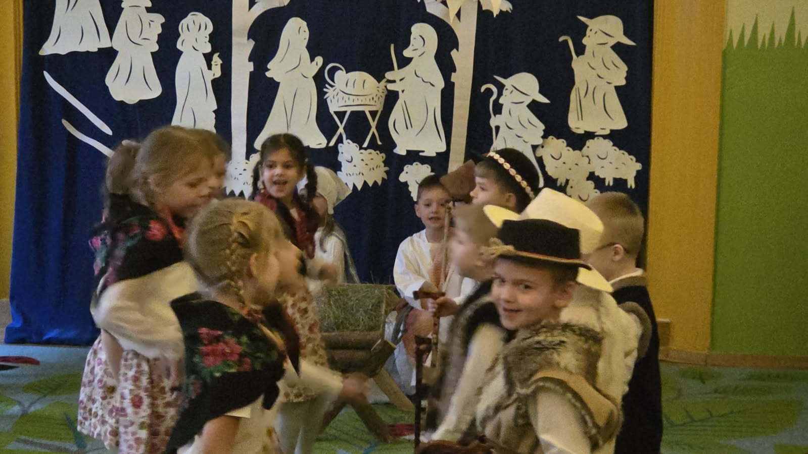 Przedszkolaki zaprezentowały przybyłym gościom "Jasełka". Recytowały wiersze, śpiewały piosenki o tematyce świątecznej oraz kolędy, zaprezentowały również taniec z latarenkami. Po przedstawieniu obdarowały swoich bliskich własnoręcznie wykonanymi upominkami oraz same otrzymały drobne niespodzianki.
