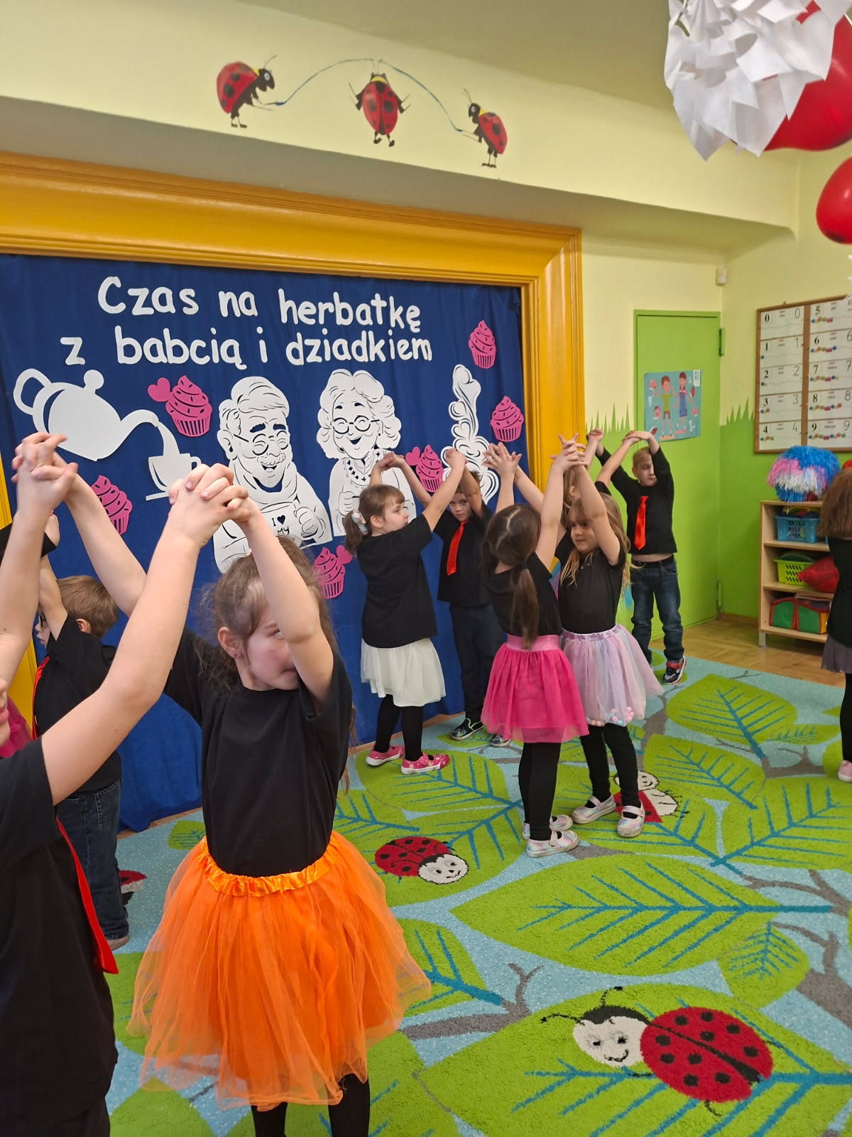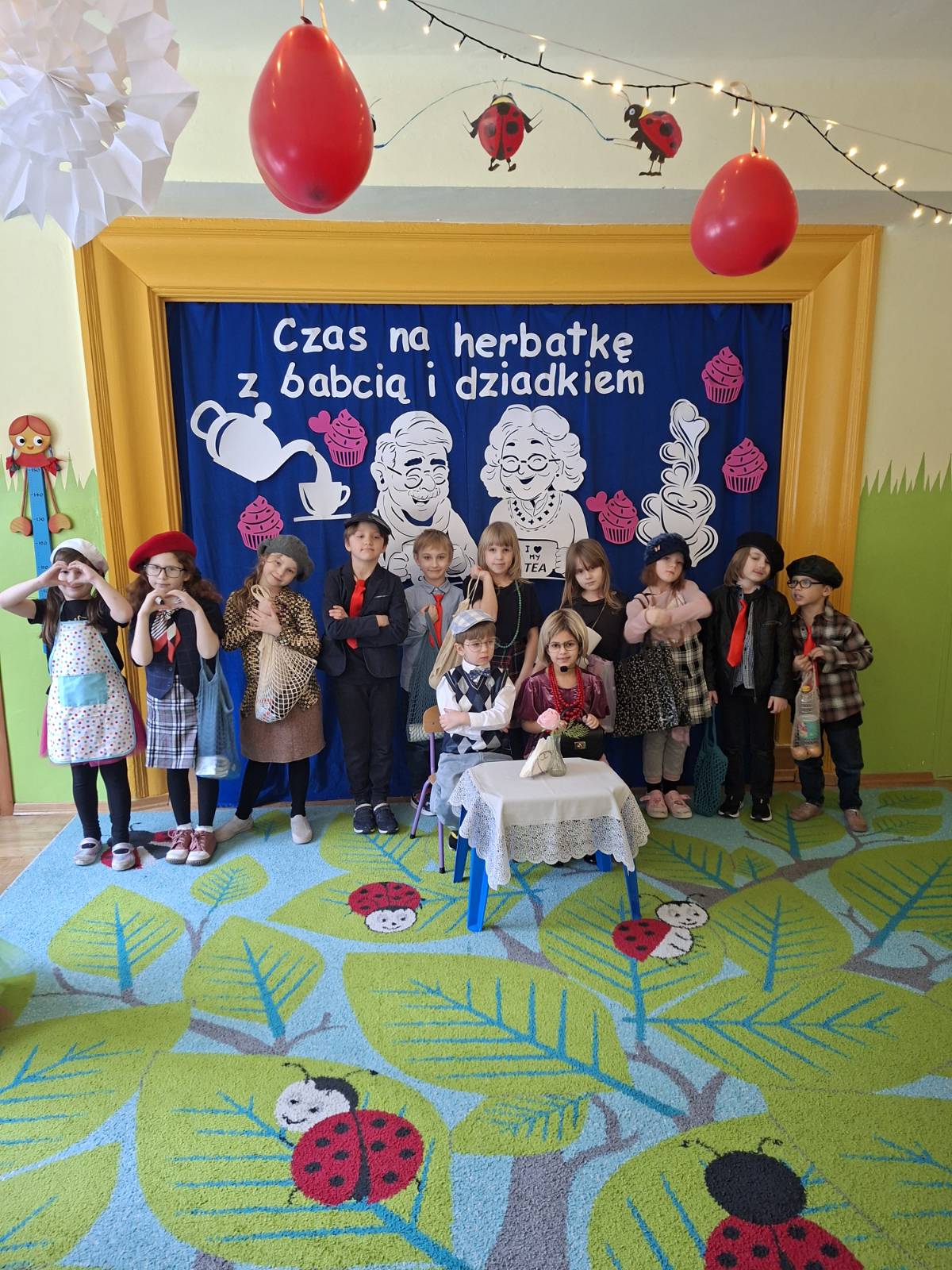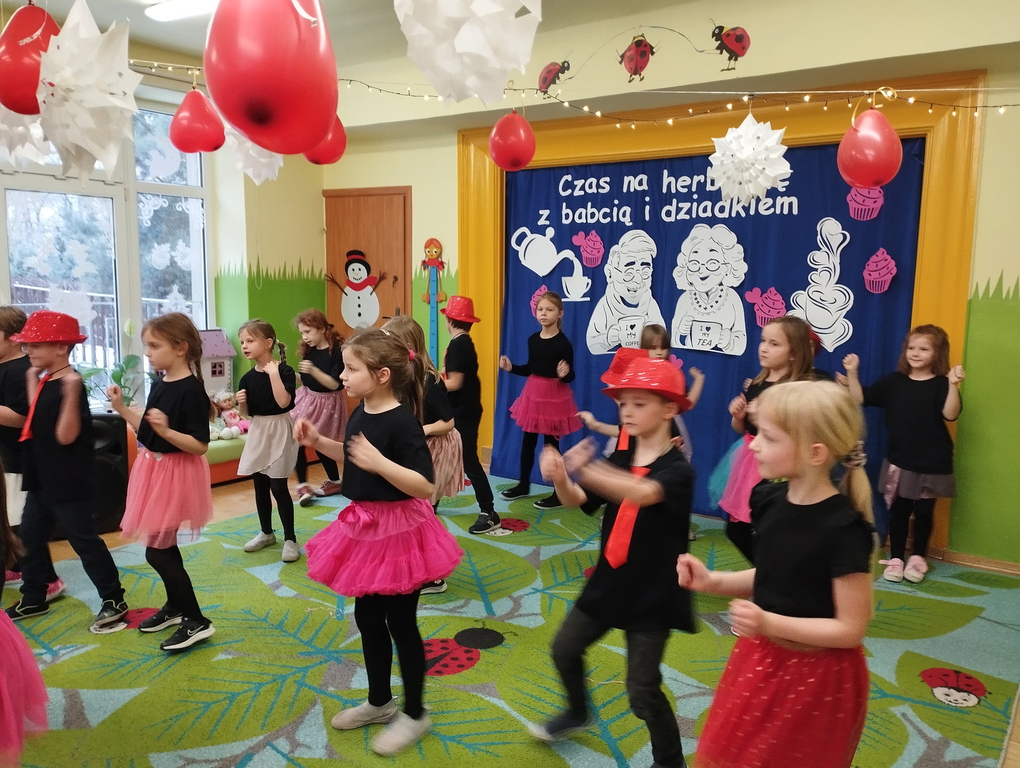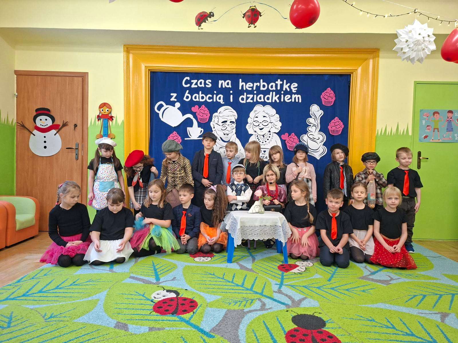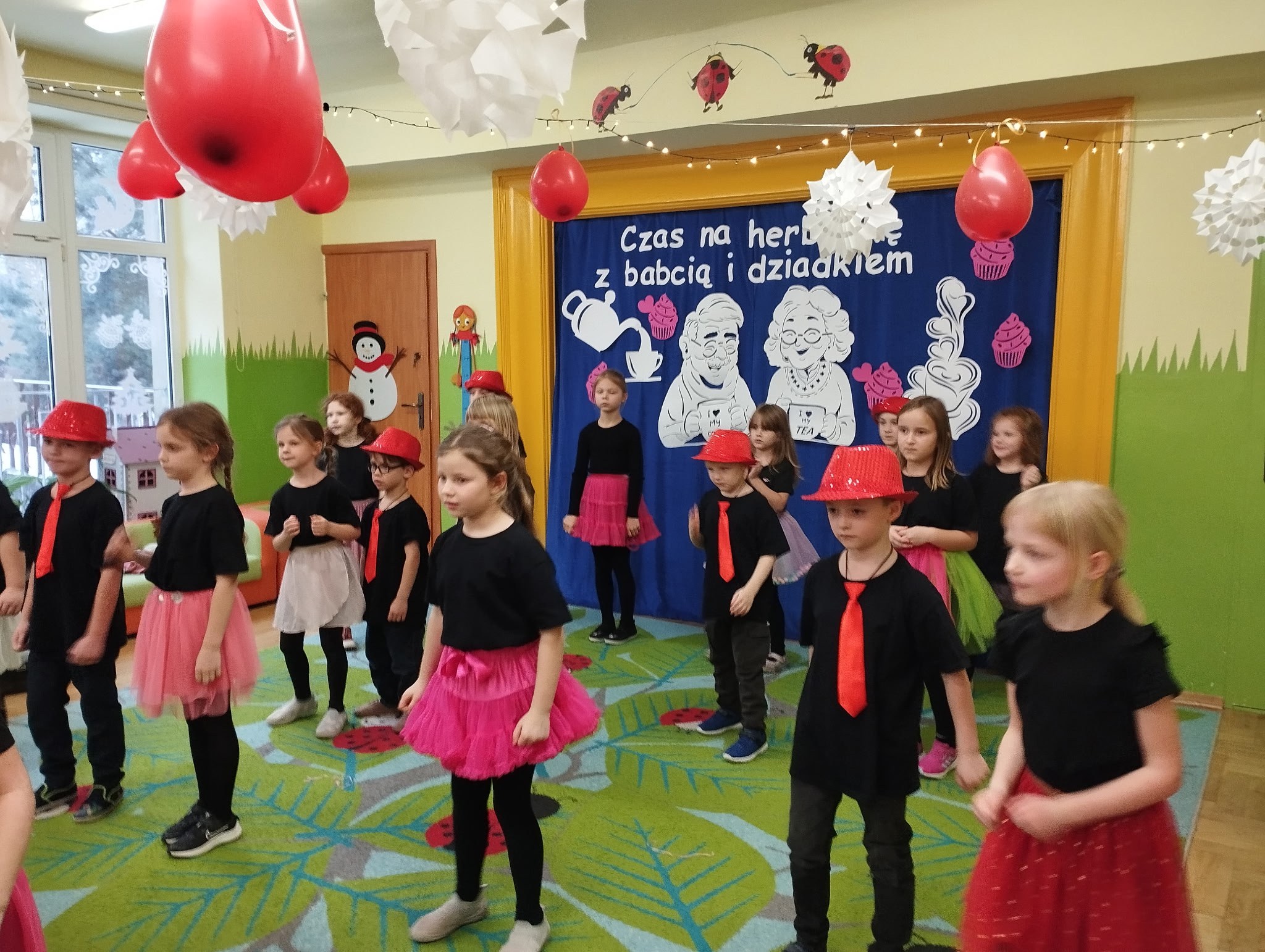 "Biedronki" zaprezentowały swoim bliskim przedstawienie pod tytułem "Czas na herbatkę z babcią i dziadkiem". Przedszkolaki złożyły także swoim Babciom i Dziadkom życzenia z okazji Ich święta, a następnie obdarowały swoich bliskich własnoręcznie wykonanymi upominkami. Na koniec goście zostali zaproszeni na słodki poczęstunek.