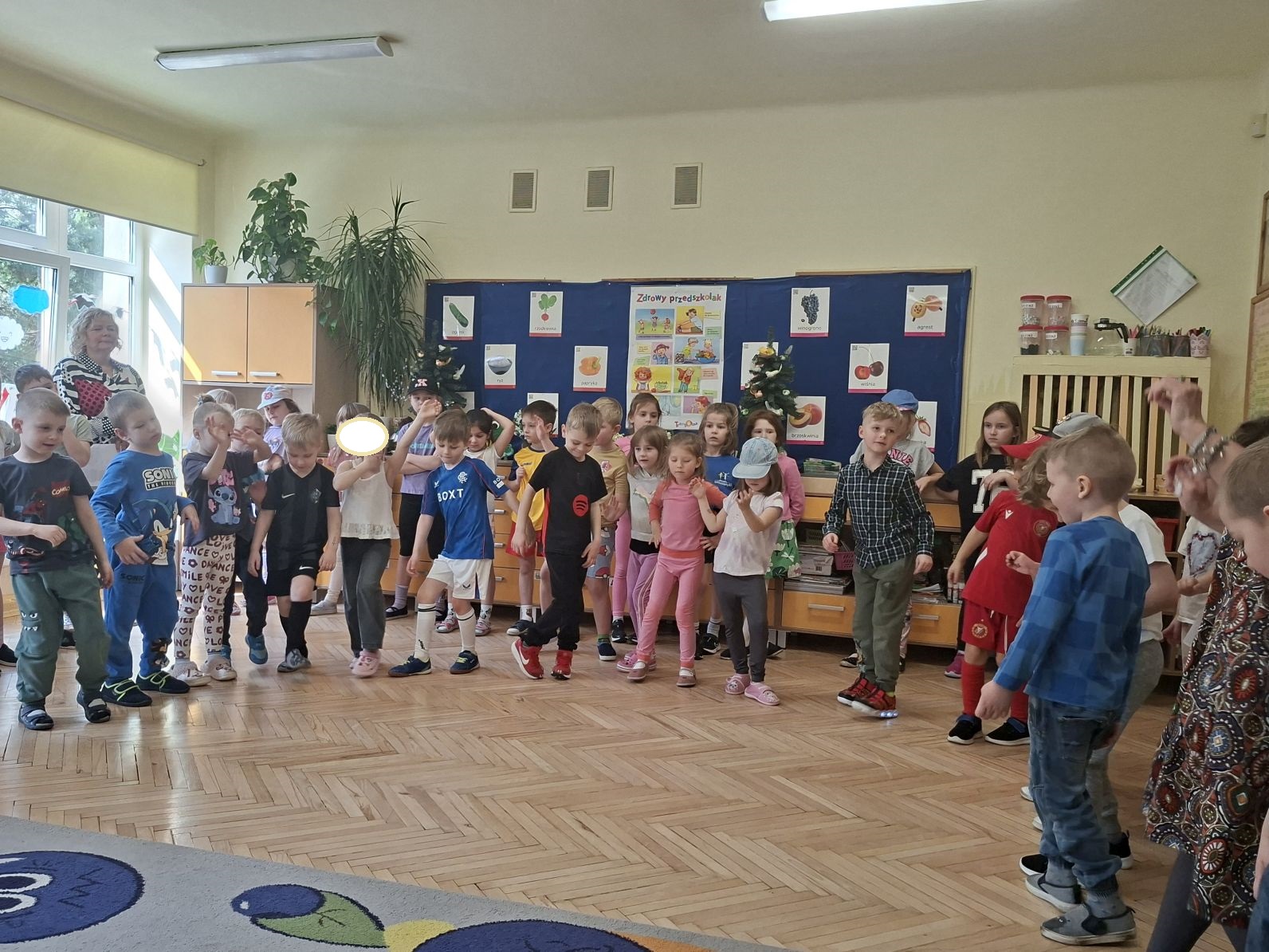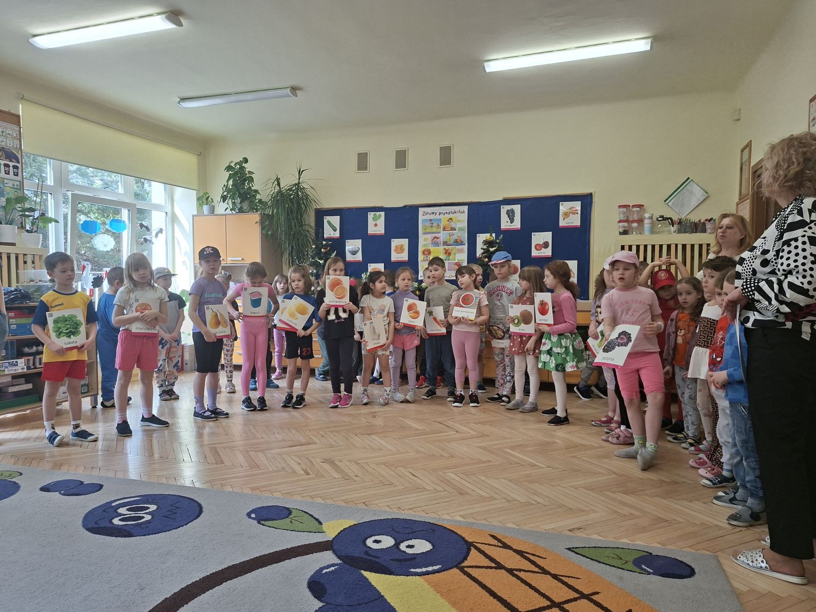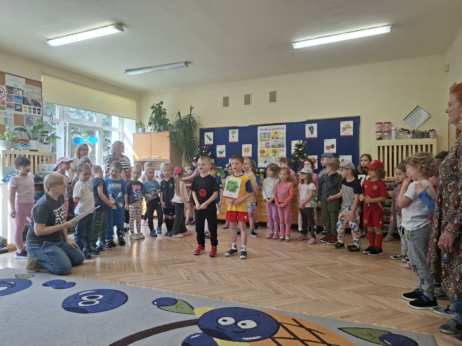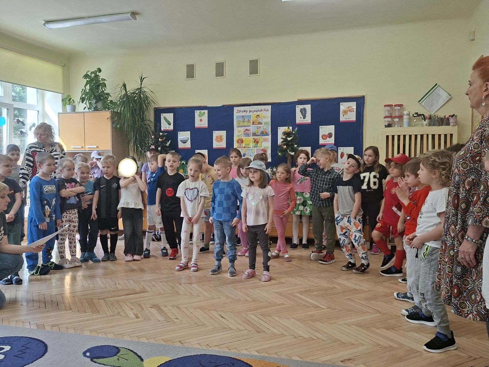 Montaż słowno - muzyczno - taneczny pod w/w tytułem przygotowały i zaprezentowały swoim młodszym kolegom z grupy I i II dzieci ze starszych grup - III i IV. Młodsze przedszkolaki na podstawie wierszy i piosenek przygotowanych przez starszych kolegów utrwaliły zasady zdrowego żywienia oraz zdrowego stylu życia, dowiedziały się również, jak ważny dla naszego zdrowia jest ruch, a także dbanie o higienę osobistą.