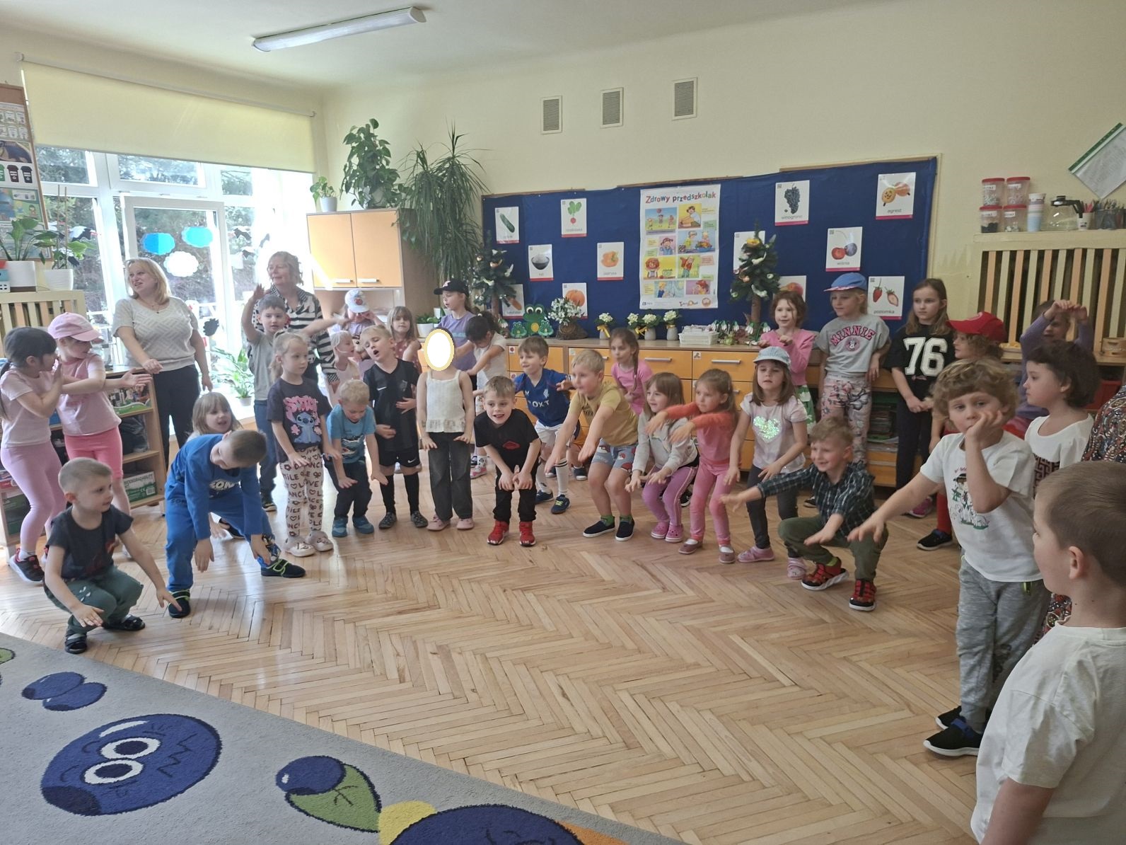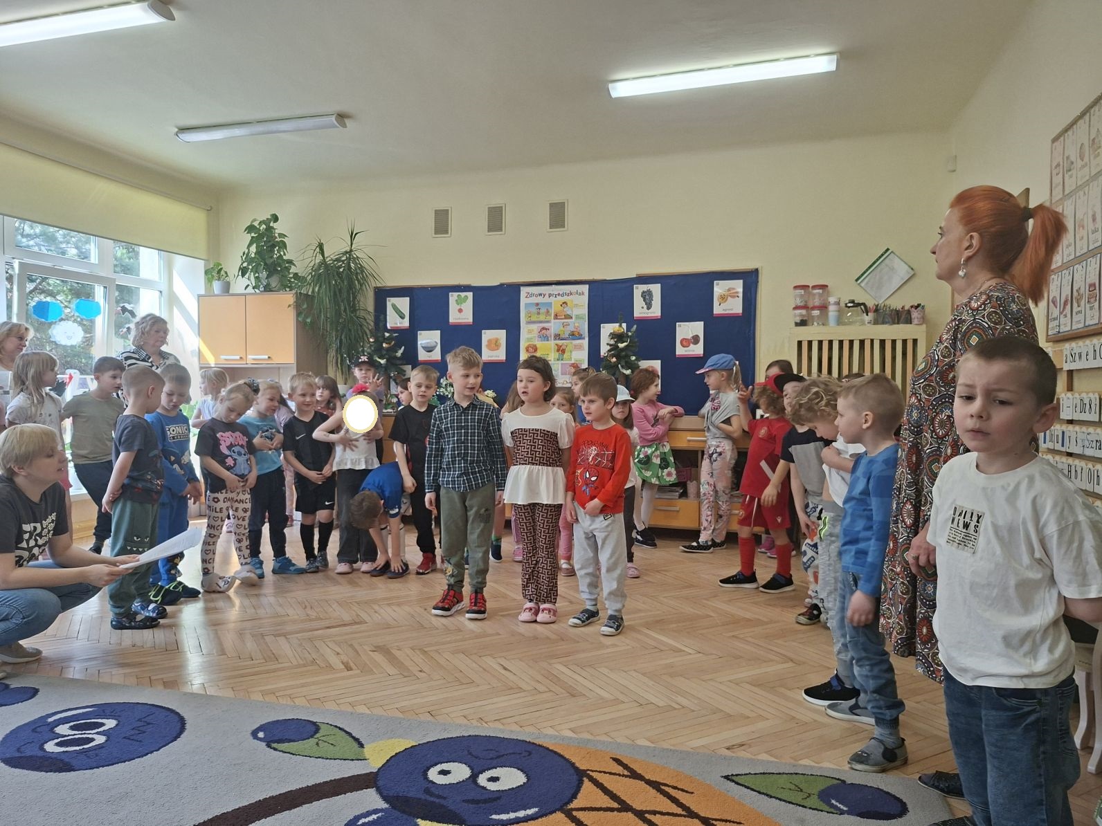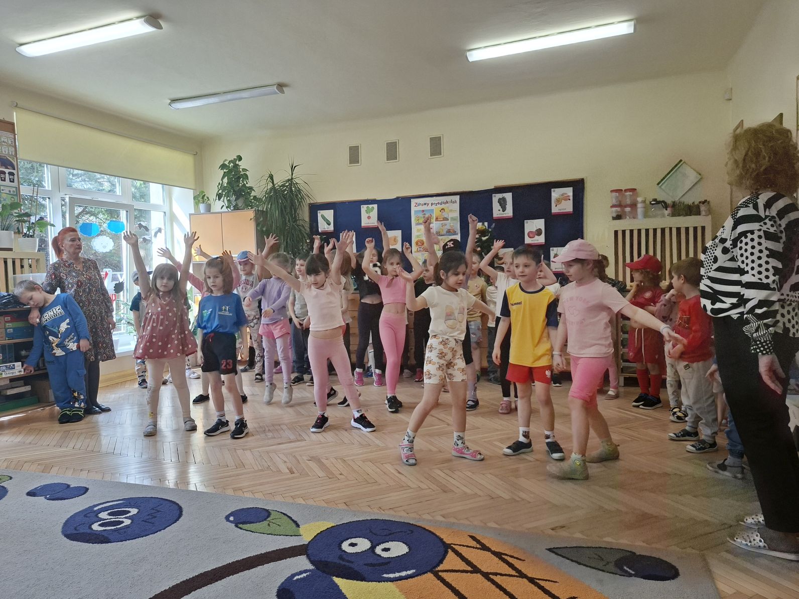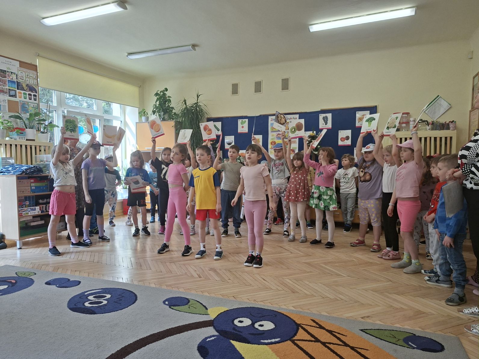 Montaż słowno - muzyczno - taneczny pod w/w tytułem przygotowały i zaprezentowały swoim młodszym kolegom z grupy I i II dzieci ze starszych grup - III i IV. Młodsze przedszkolaki na podstawie wierszy i piosenek przygotowanych przez starszych kolegów utrwaliły zasady zdrowego żywienia oraz zdrowego stylu życia, dowiedziały się również, jak ważny dla naszego zdrowia jest ruch, a także dbanie o higienę osobistą.