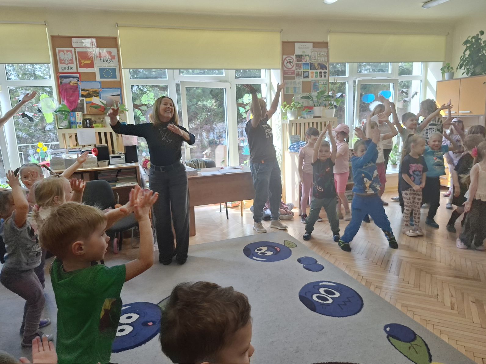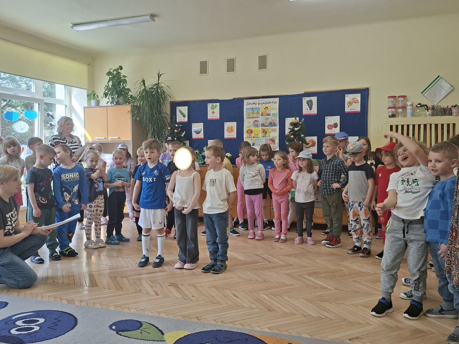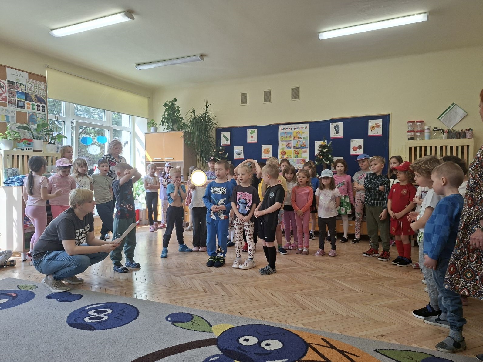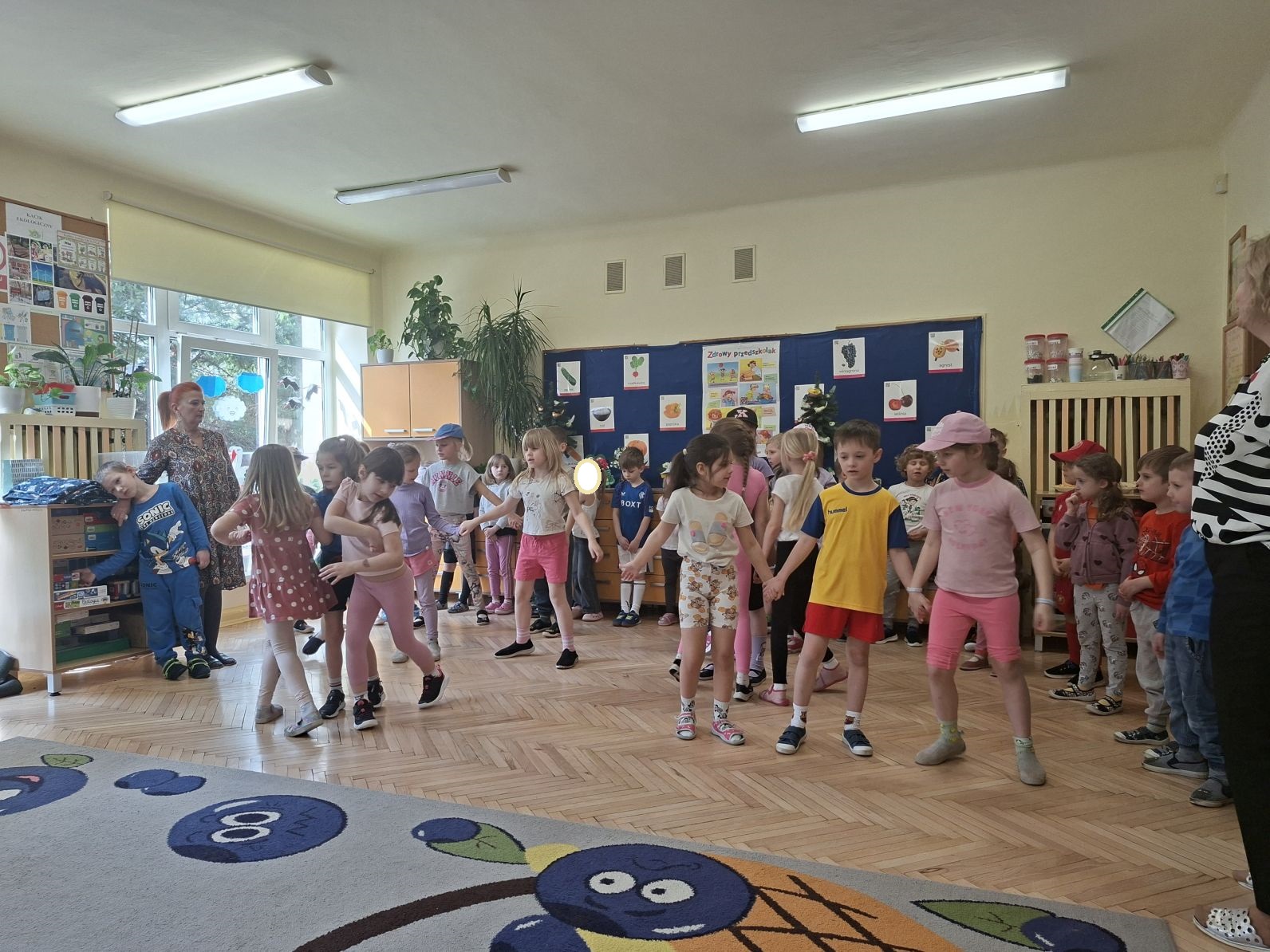 Montaż słowno - muzyczno - taneczny pod w/w tytułem przygotowały i zaprezentowały swoim młodszym kolegom z grupy I i II dzieci ze starszych grup - III i IV. Młodsze przedszkolaki na podstawie wierszy i piosenek przygotowanych przez starszych kolegów utrwaliły zasady zdrowego żywienia oraz zdrowego stylu życia, dowiedziały się również, jak ważny dla naszego zdrowia jest ruch, a także dbanie o higienę osobistą.
