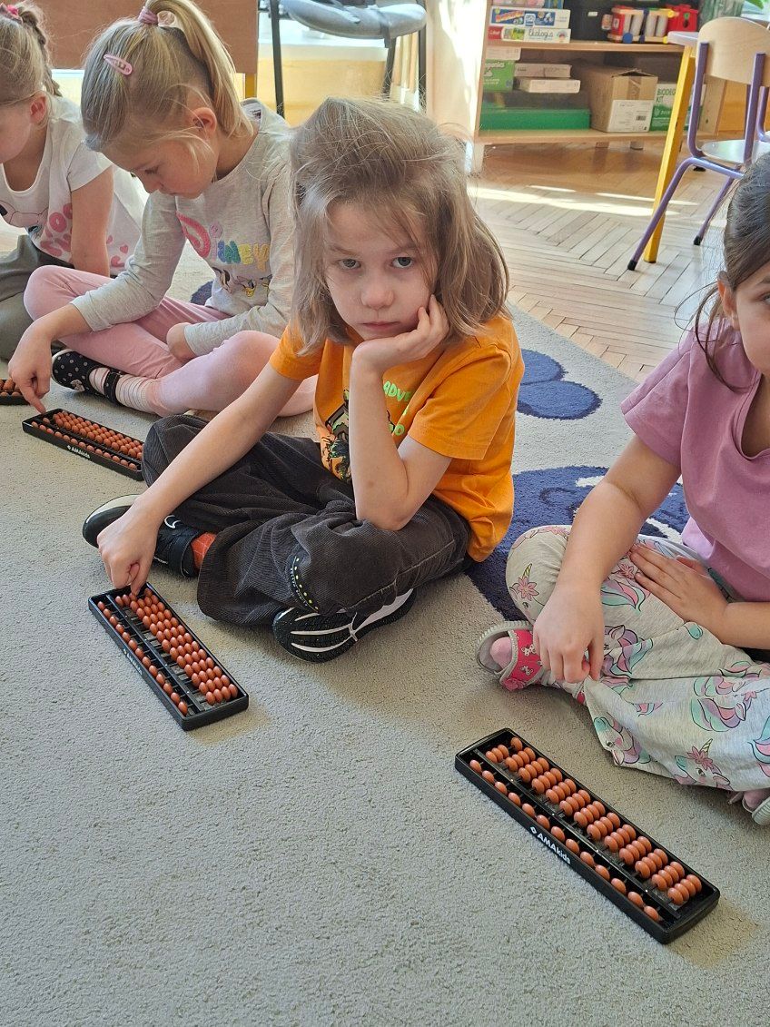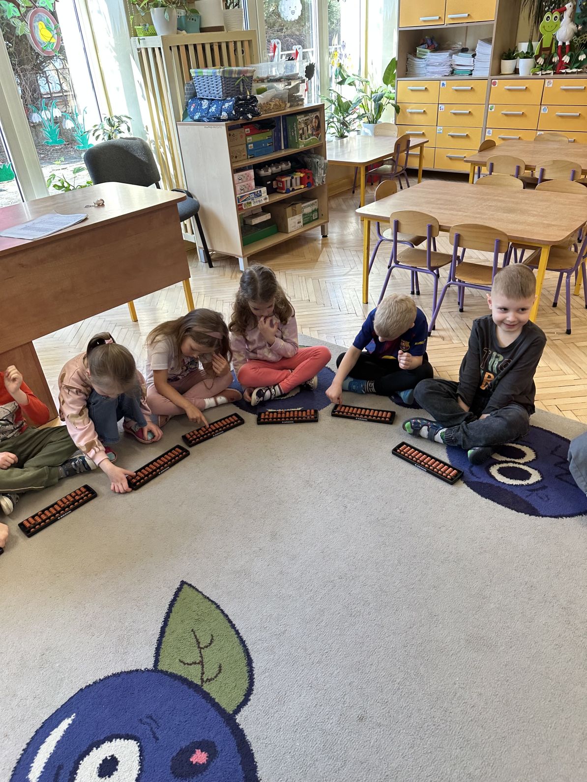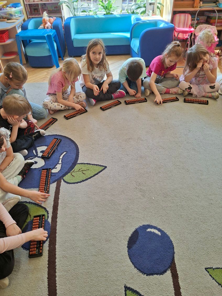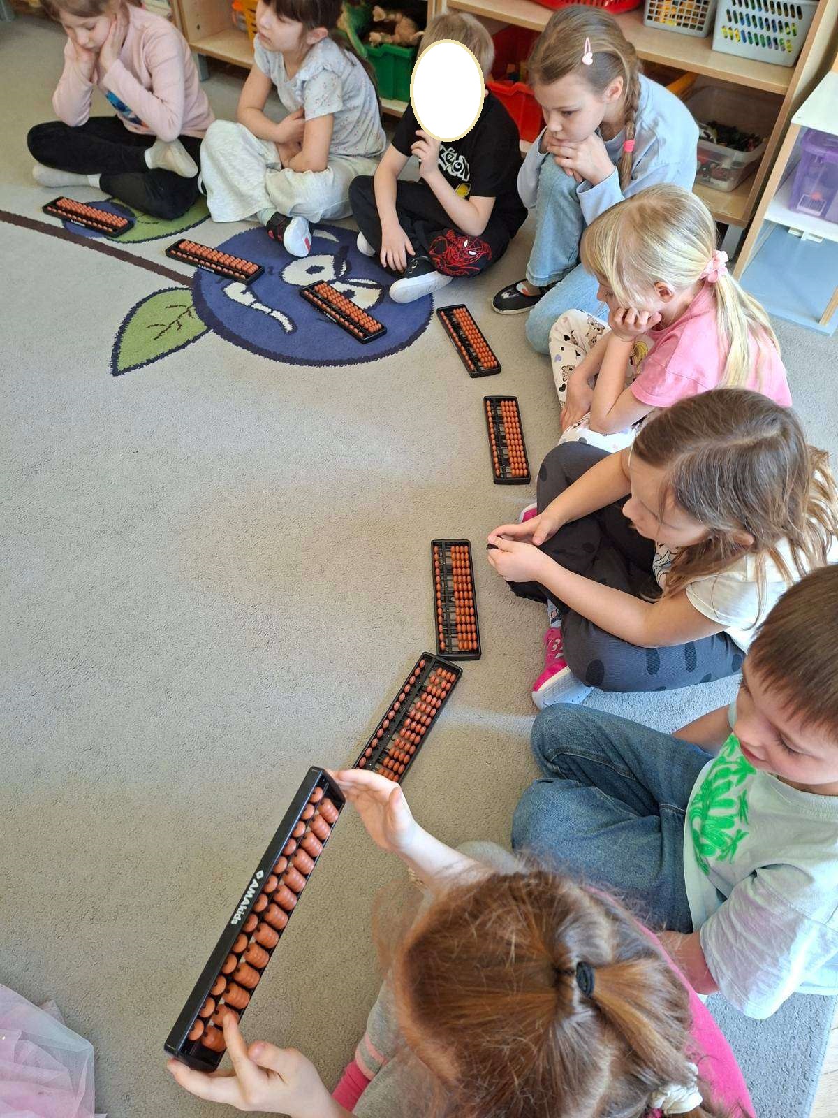Dzieci zapoznały się z sorobanem - japońską odmianą liczydła. Przedszkolaki wykonywały działania matematyczne z wykorzystaniem tego przyrządu.