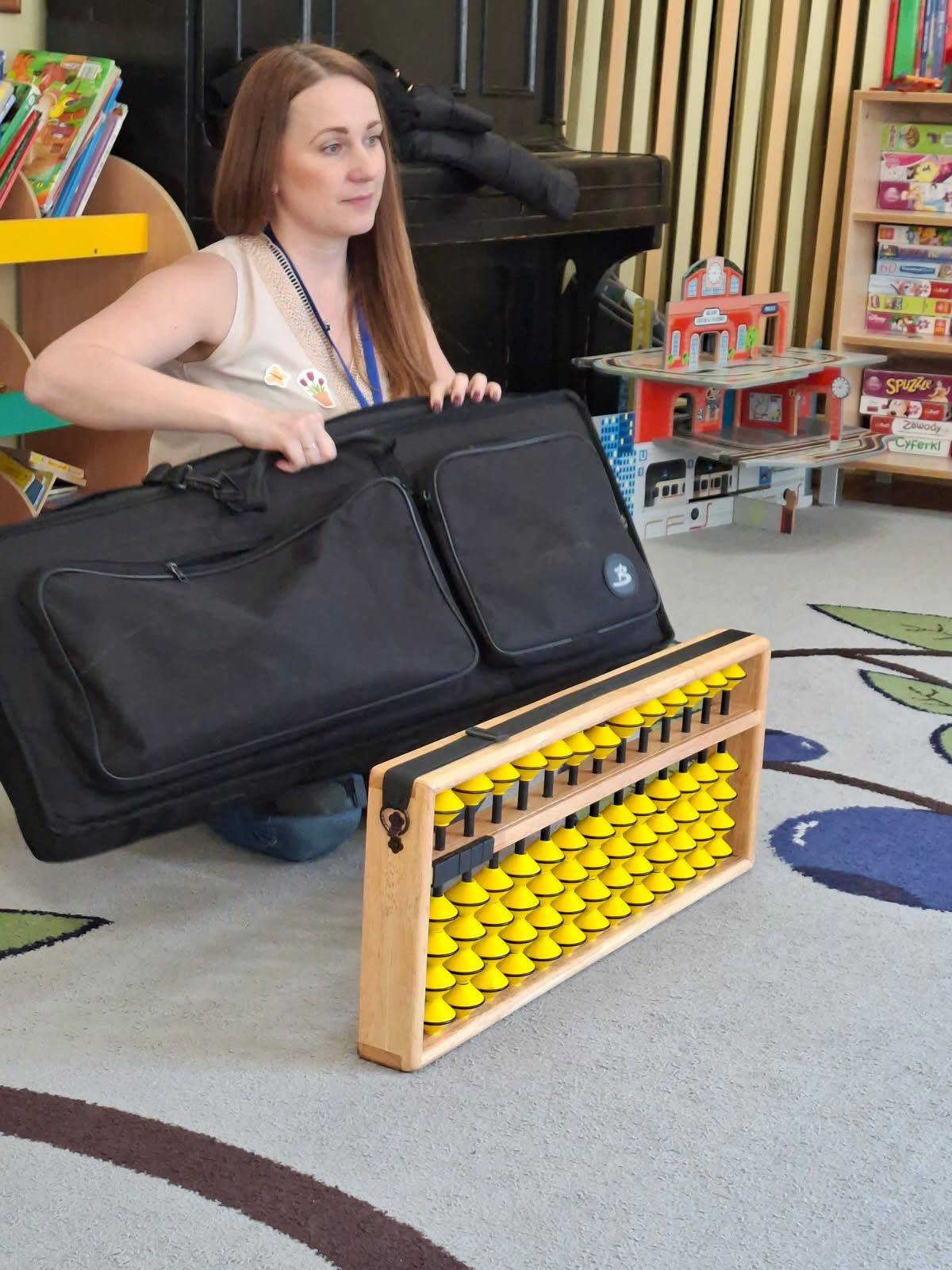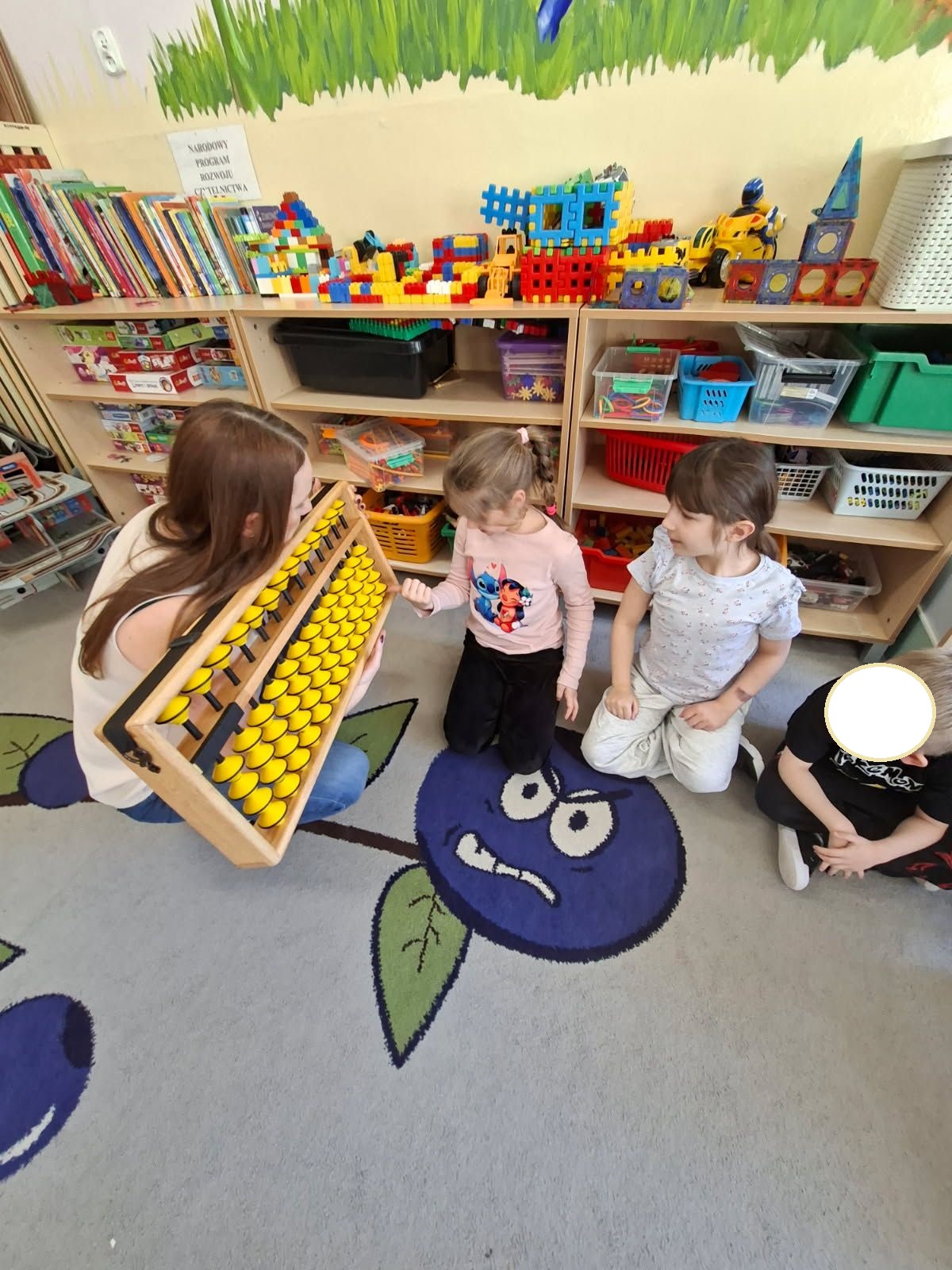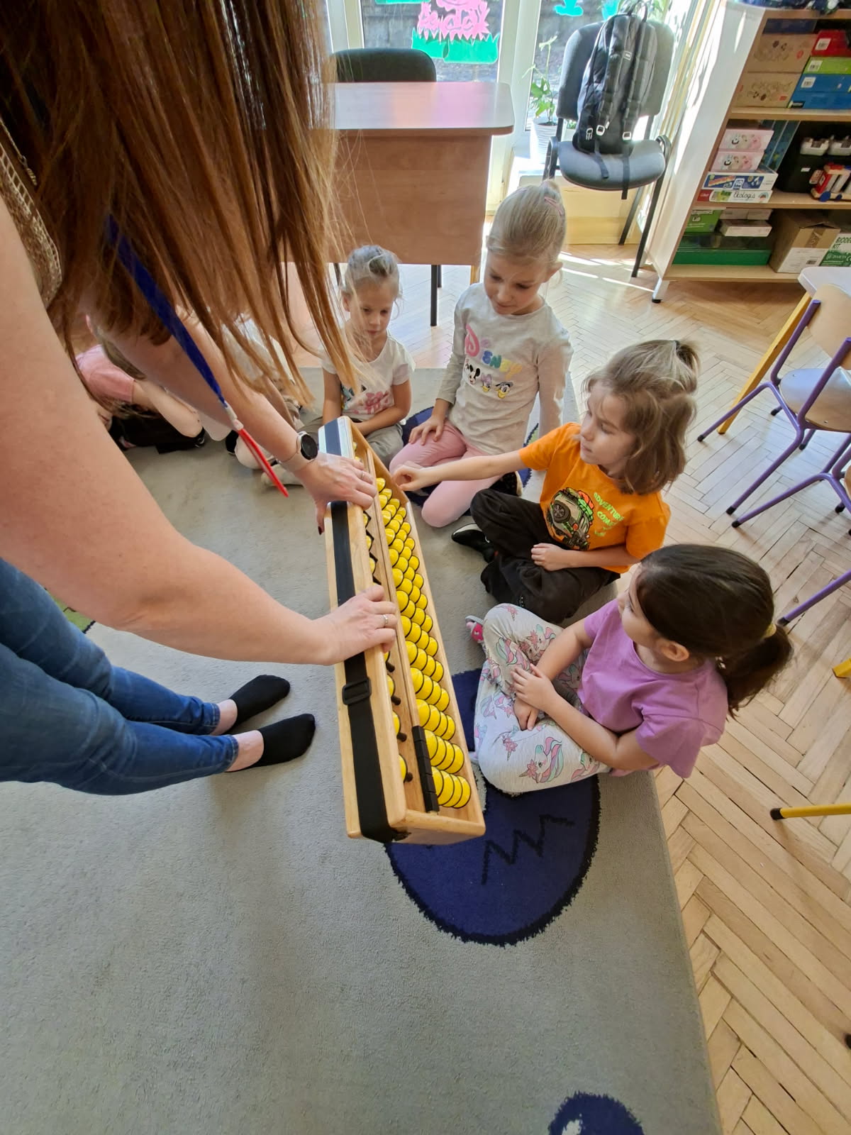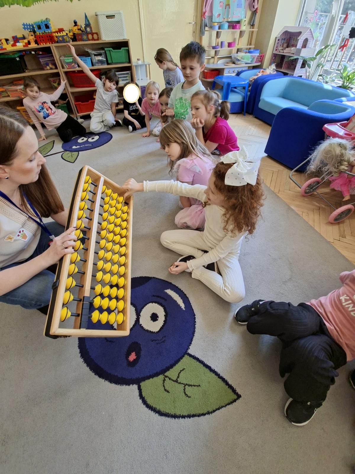 Dzieci zapoznały się z sorobanem - japońską odmianą liczydła. Przedszkolaki wykonywały działania matematyczne z wykorzystaniem tego przyrządu.