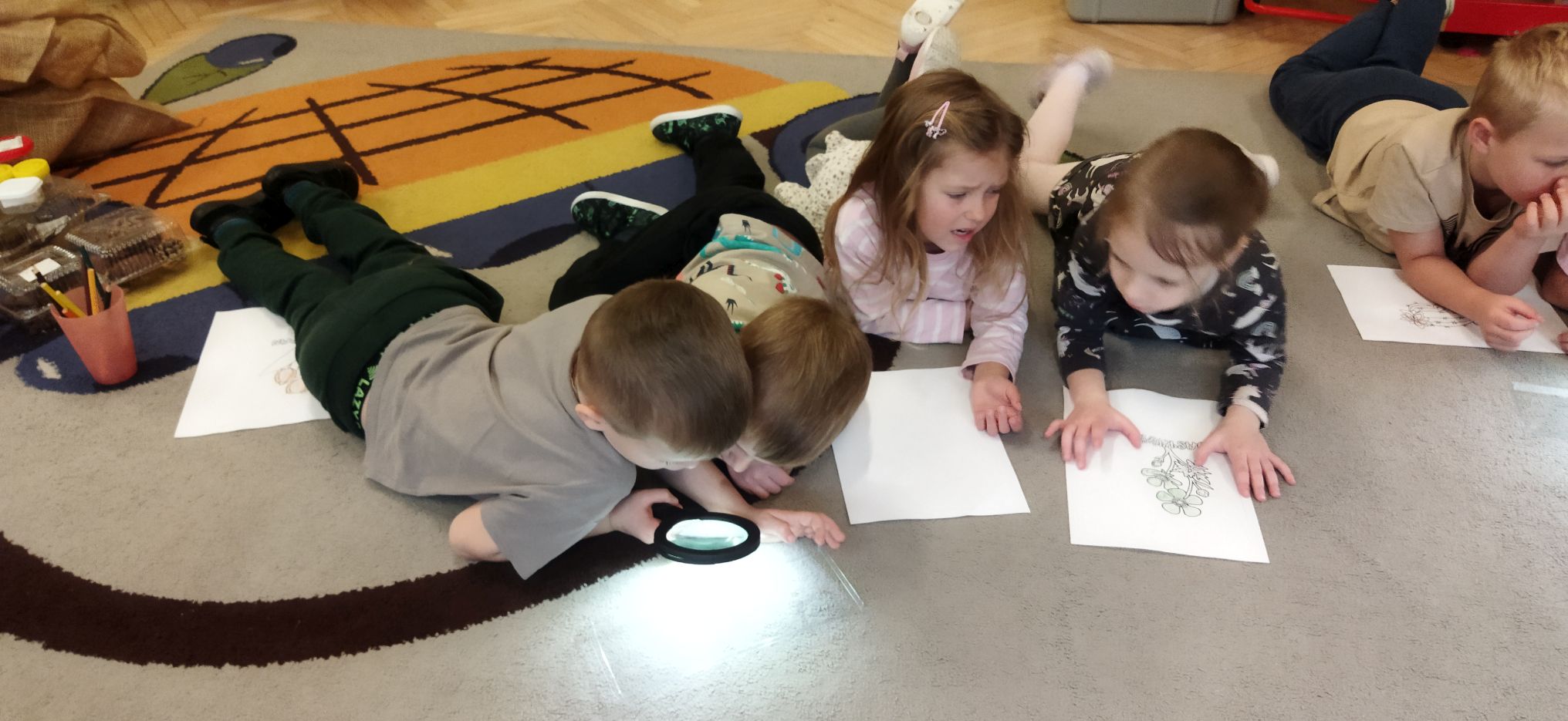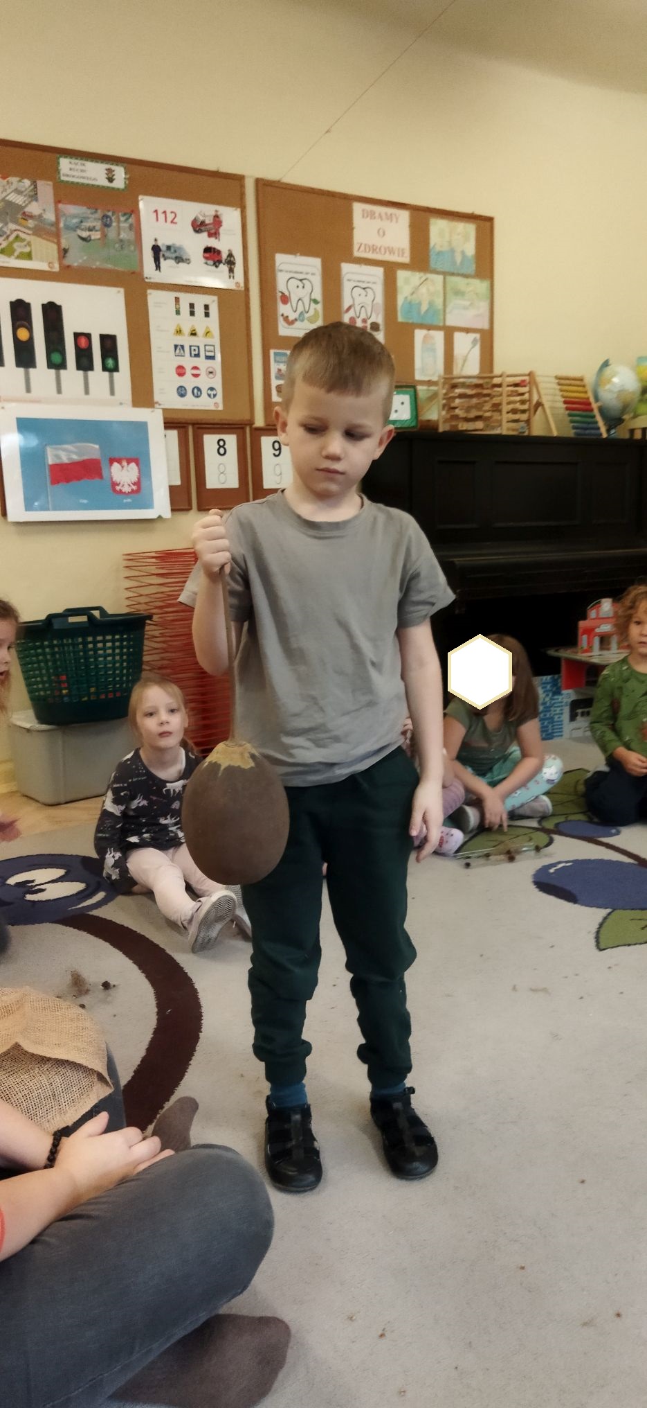 Dzieci poznały i badały różne owoce, nasiona z krajów egzotycznych. Oglądały przez podświetlane lupy, badały dotykiem, węchem i słuchem szyszki, kwiaty bawełny oraz nasiona.