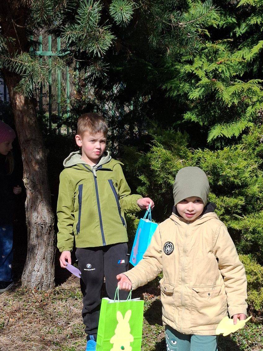 Na koniec przedszkolaki poszukiwały ukrytych w ogrodzie prezentów od wielkanocnego zajączka.