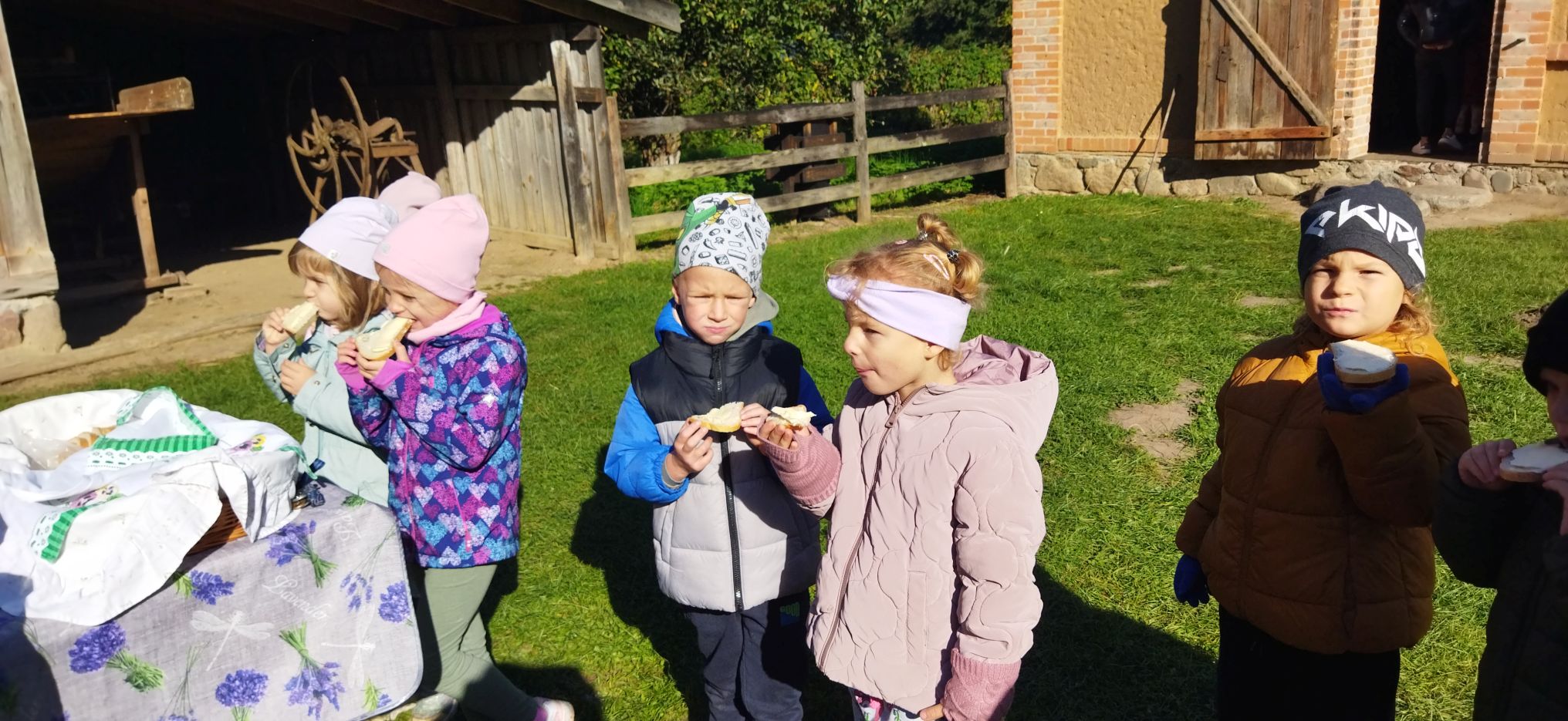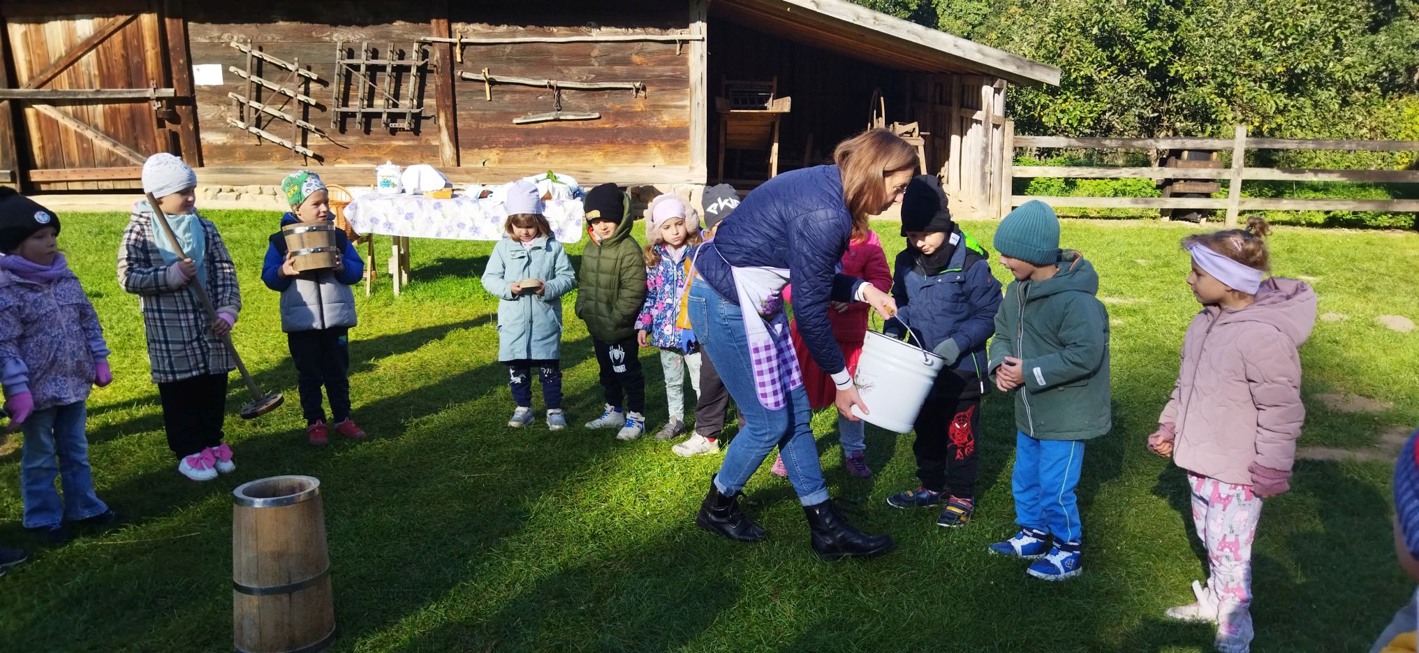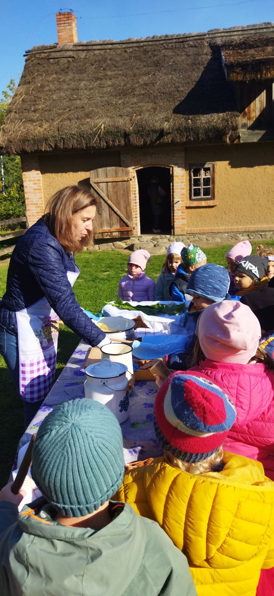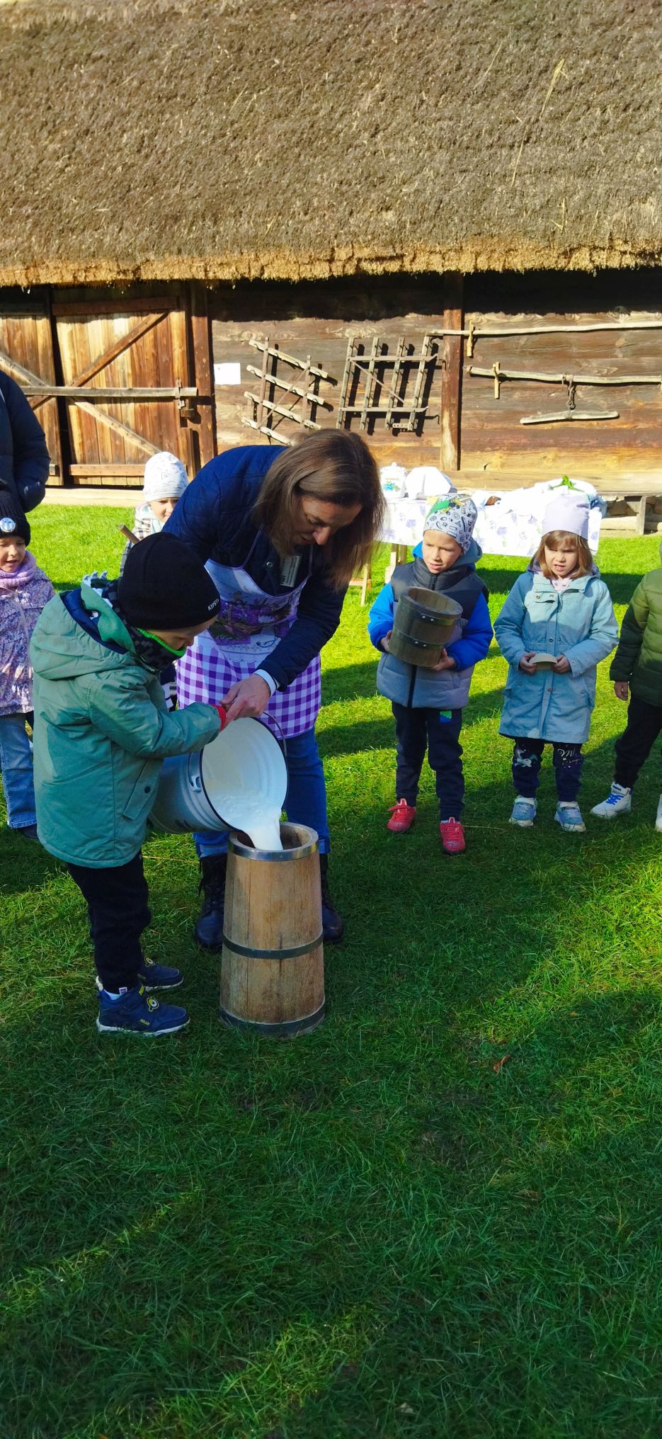 Przedszkolaki zwiedziły starą kuźnię, szkołę, karczmę, remizę strażacką, kościół oraz olejarnię, czyli obrazy dawnej wsi. Wzięły też udział w warsztatach tradycyjnego wyrobu masła, po czym każde dziecko miało możliwość popróbowania własnego wyrobu.