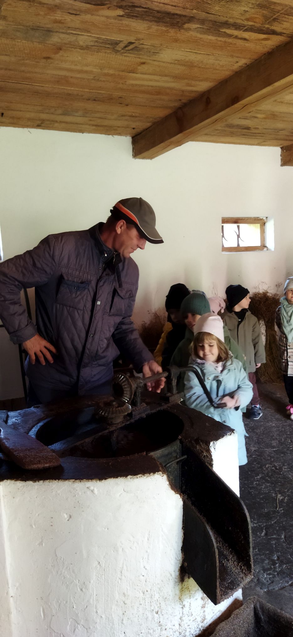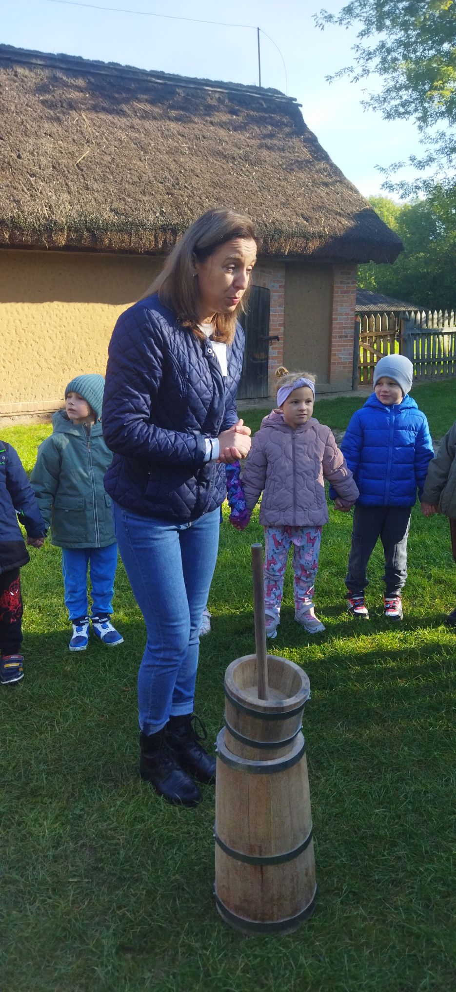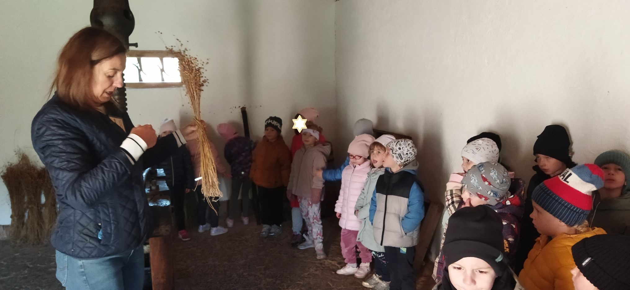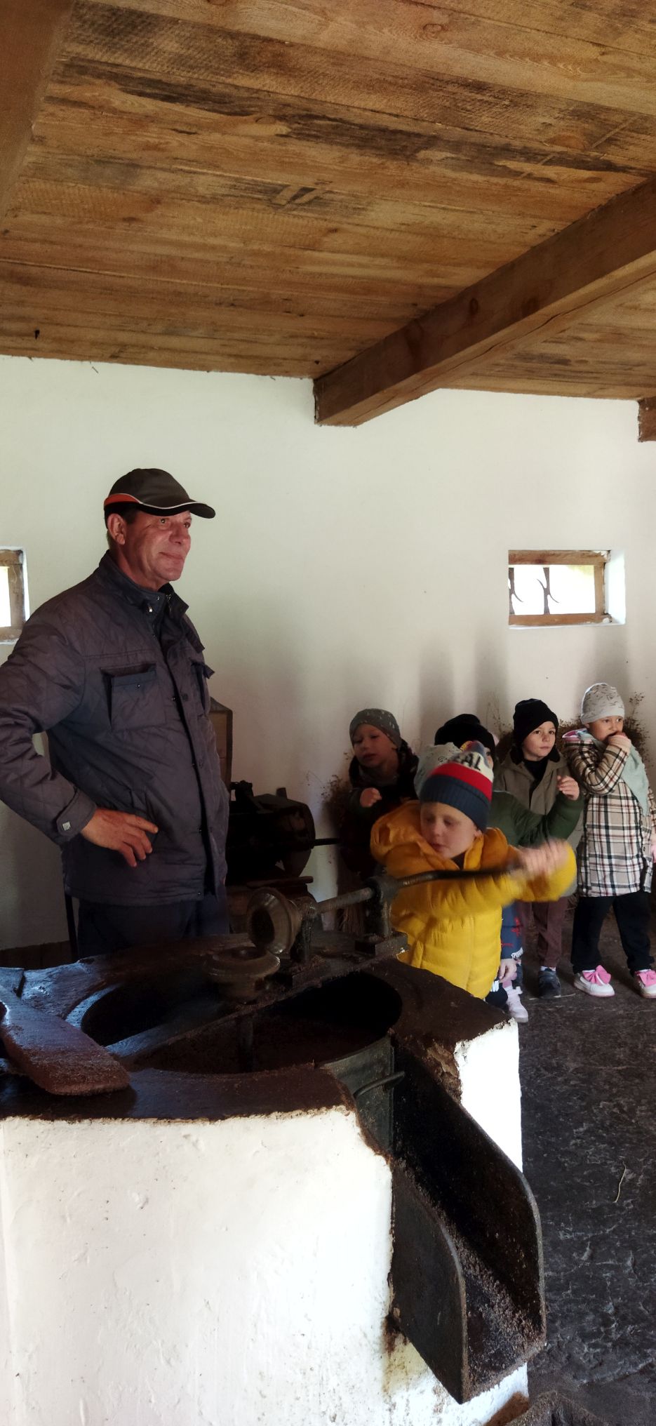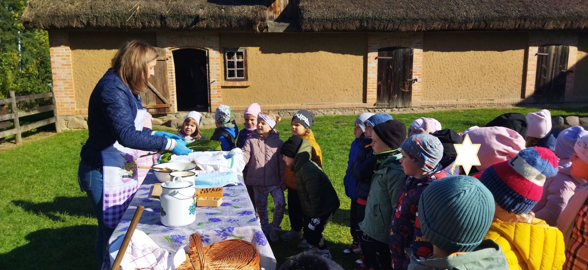 Przedszkolaki zwiedziły starą kuźnię, szkołę, karczmę, remizę strażacką, kościół oraz olejarnię, czyli obrazy dawnej wsi. Wzięły też udział w warsztatach tradycyjnego wyrobu masła, po czym każde dziecko miało możliwość popróbowania własnego wyrobu.