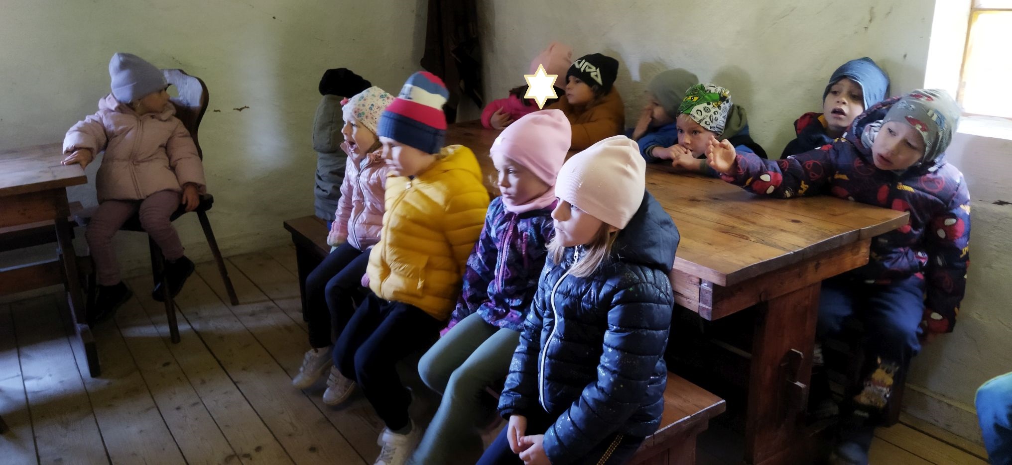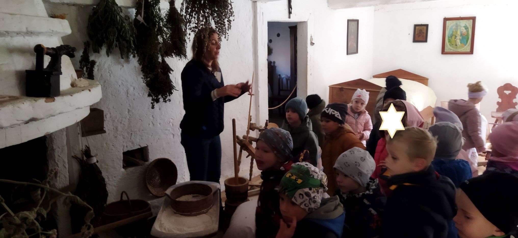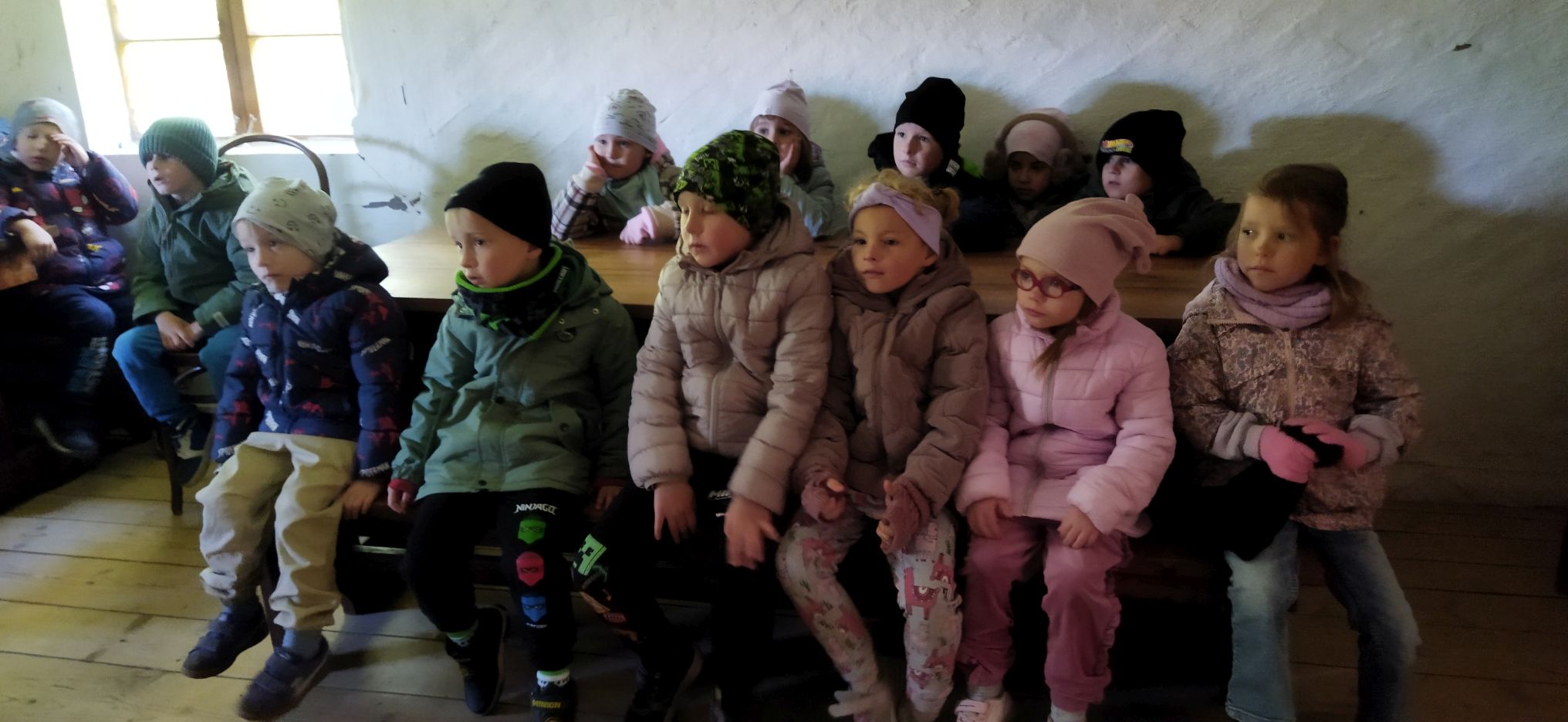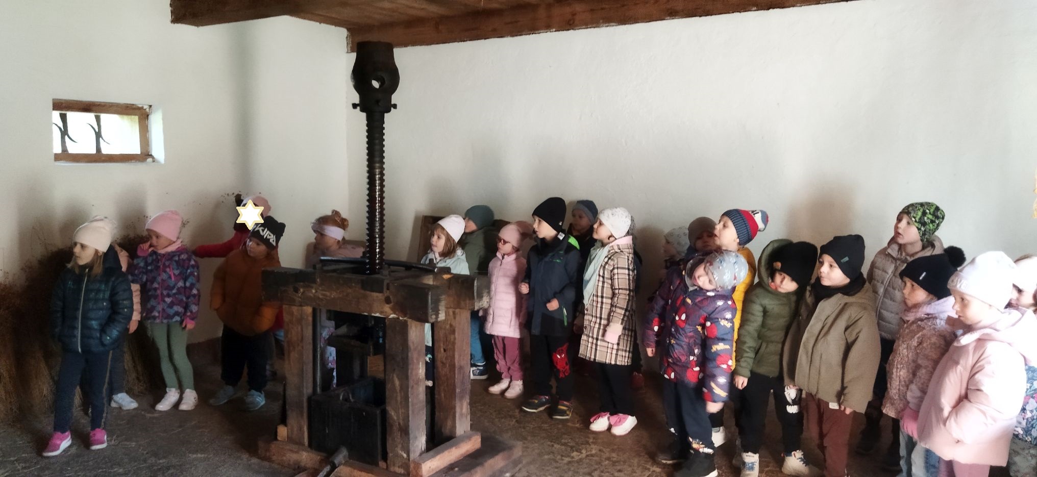 Przedszkolaki zwiedziły starą kuźnię, szkołę, karczmę, remizę strażacką, kościół oraz olejarnię, czyli obrazy dawnej wsi. Wzięły też udział w warsztatach tradycyjnego wyrobu masła, po czym każde dziecko miało możliwość popróbowania własnego wyrobu.