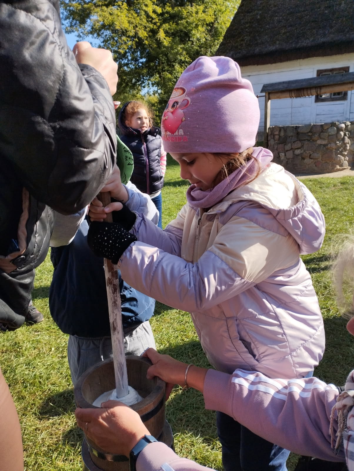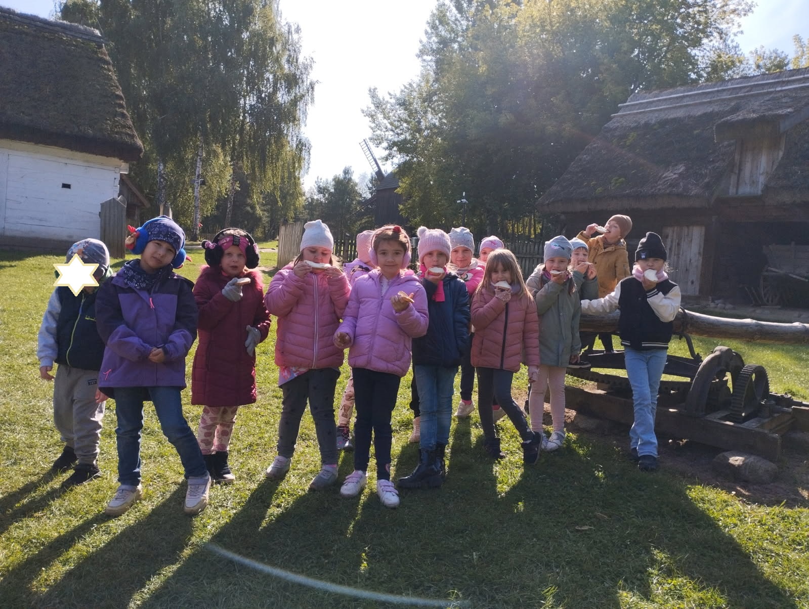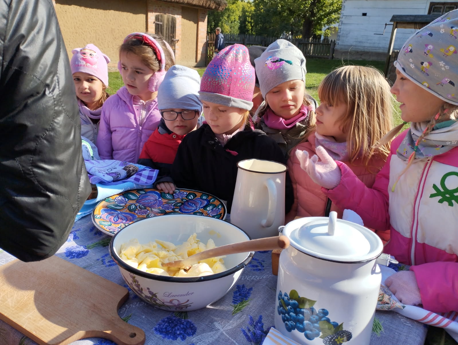 Przedszkolaki zwiedziły starą kuźnię, szkołę, karczmę, remizę strażacką, kościół oraz olejarnię, czyli obrazy dawnej wsi. Wzięły też udział w warsztatach tradycyjnego wyrobu masła, po czym każde dziecko miało możliwość popróbowania własnego wyrobu.