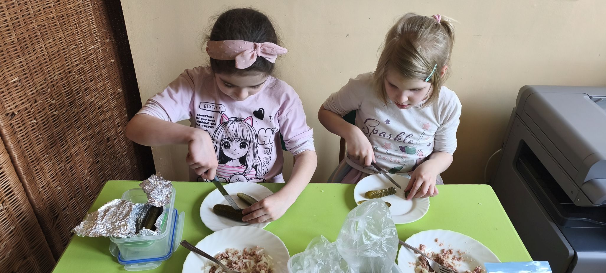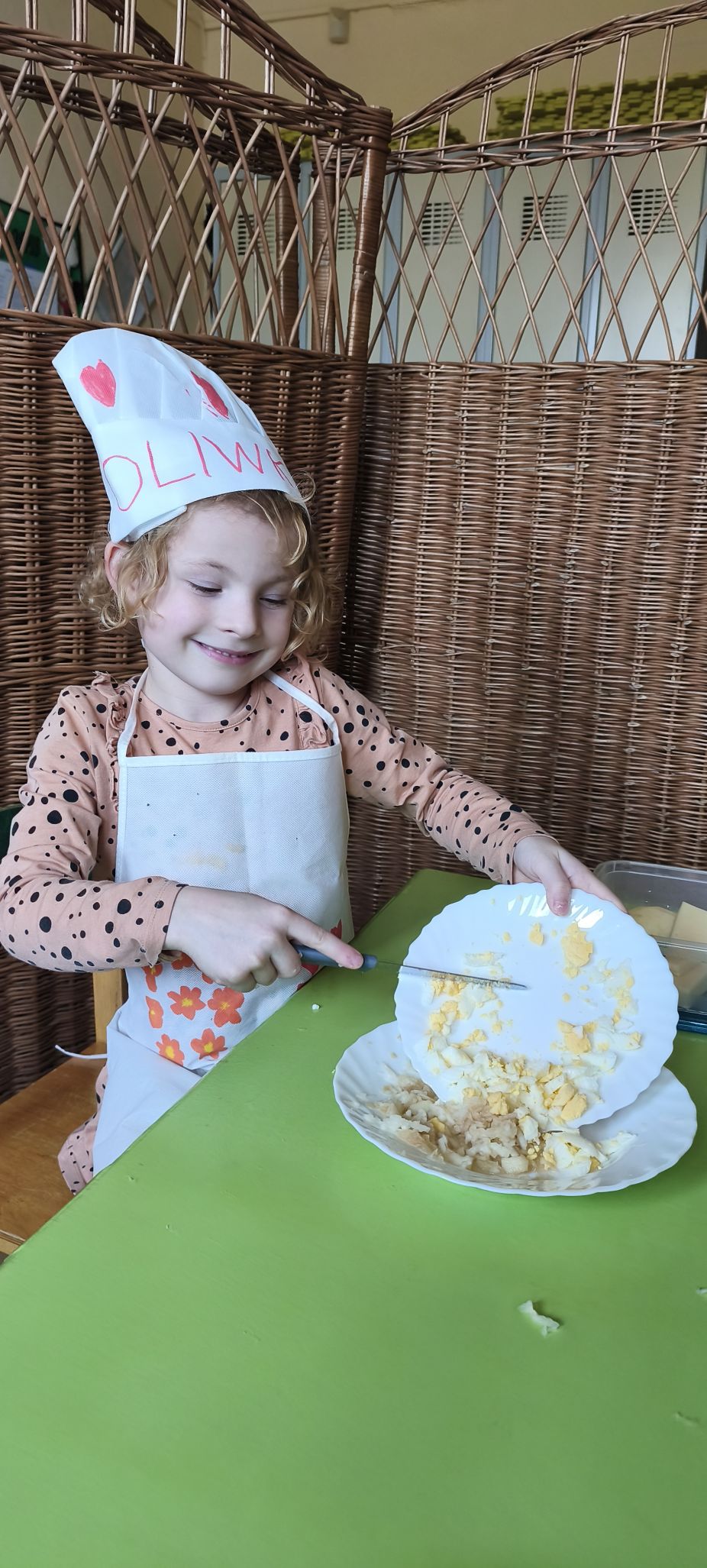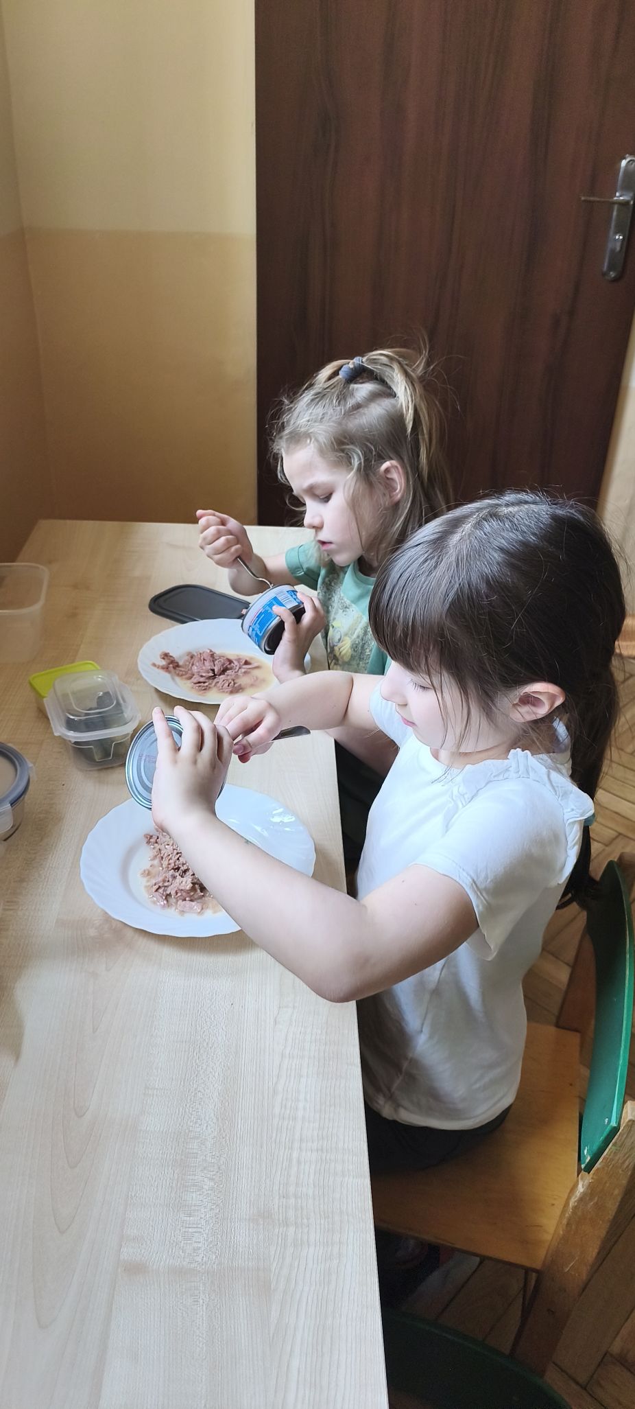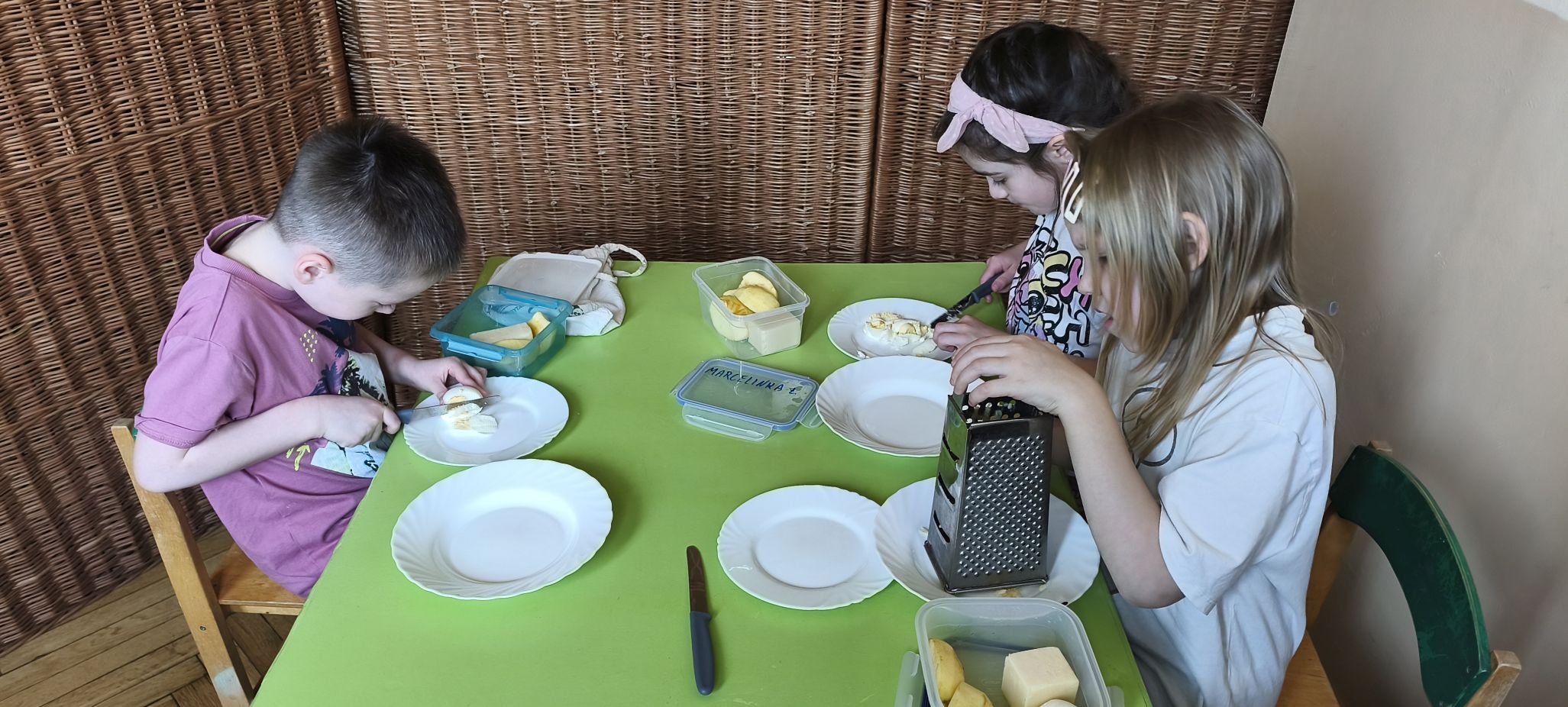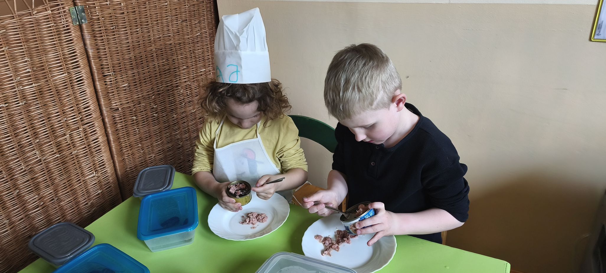 Podczas zajęć w miesiącu kwietniu - 13 i 15.04.2026 r., dzieci - uczestnicy projektu - przyrządziły sałatkę z jajkiem oraz kanapeczki z pastą z tuńczyka.