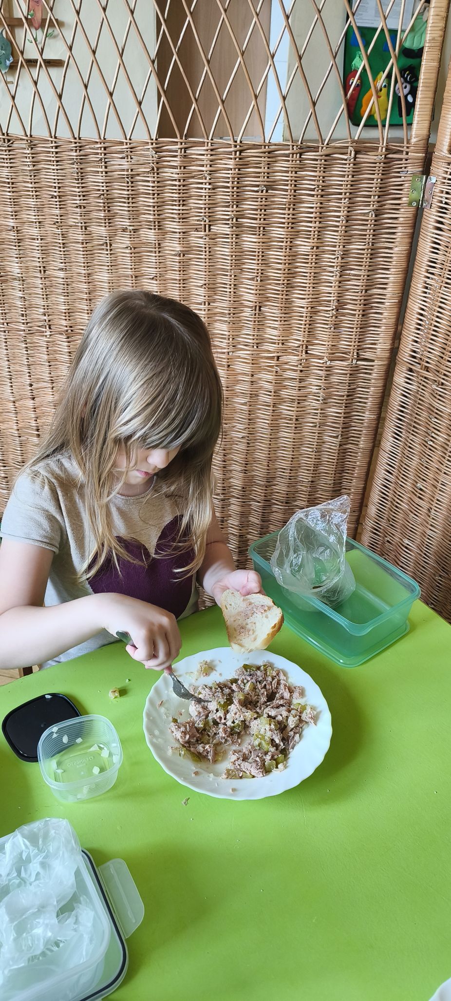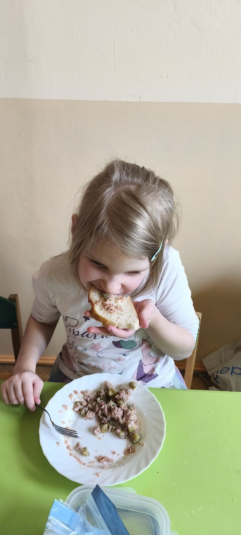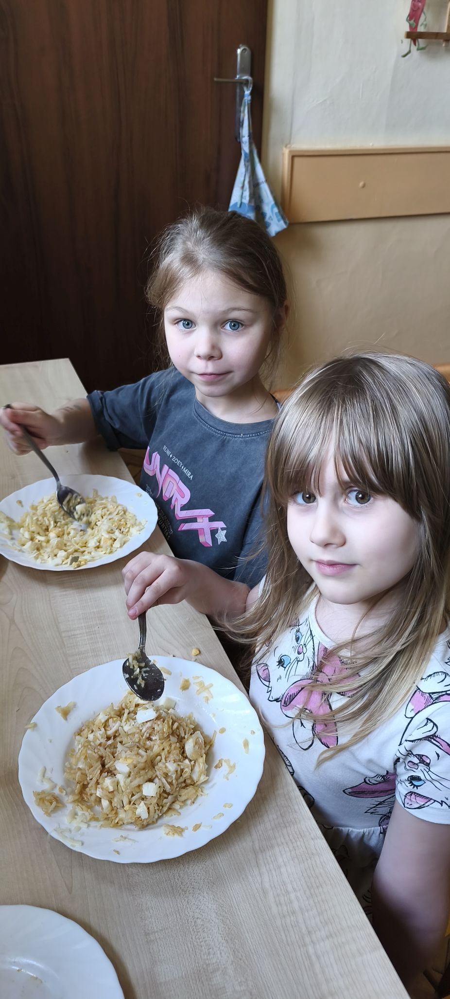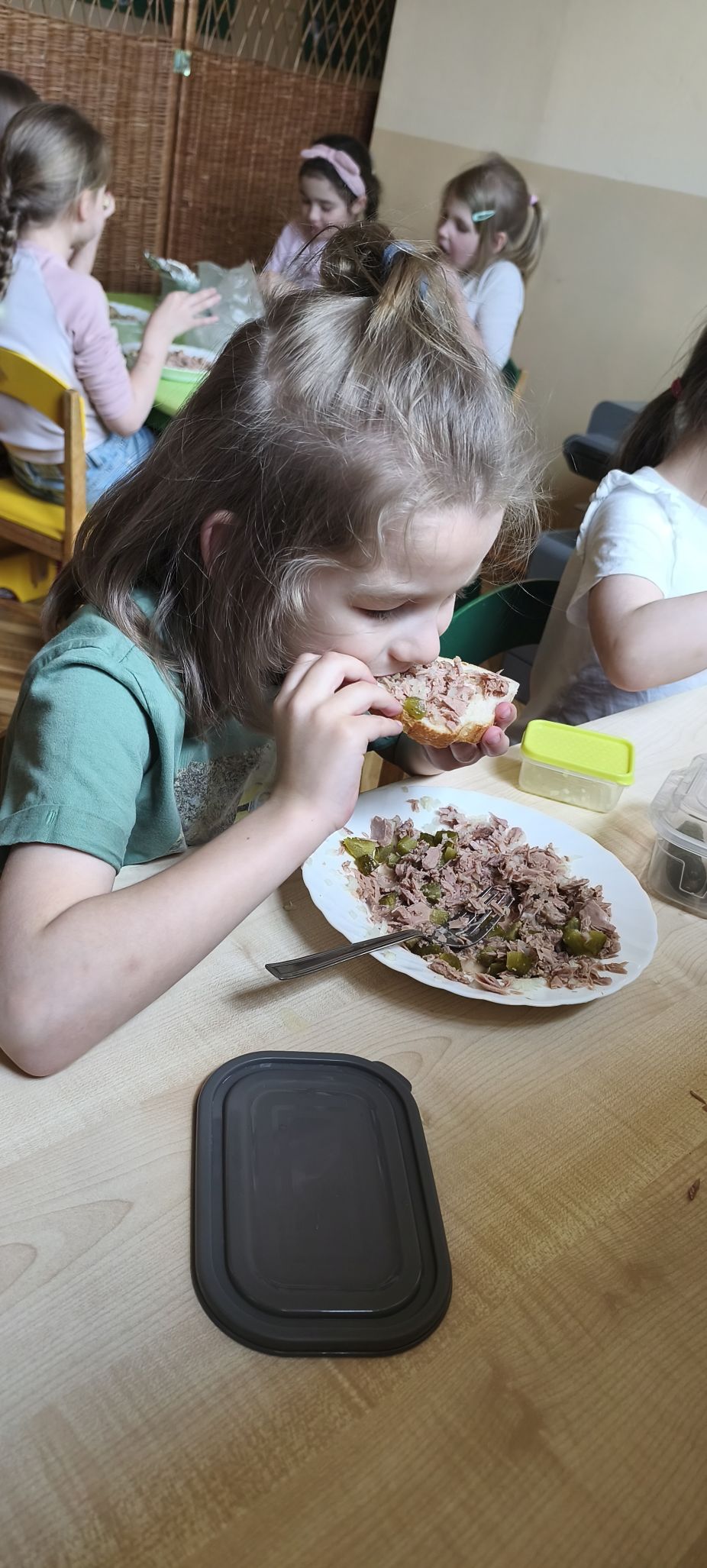 Podczas zajęć w miesiącu kwietniu - 13 i 15.04.2026 r., dzieci - uczestnicy projektu - przyrządziły sałatkę z jajkiem oraz kanapeczki z pastą z tuńczyka.
