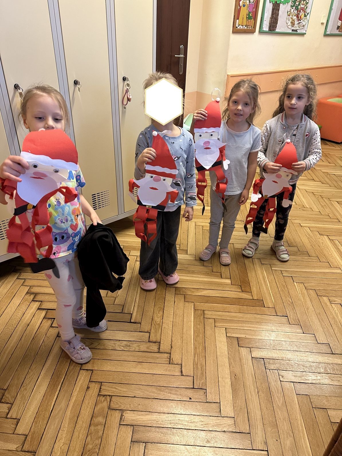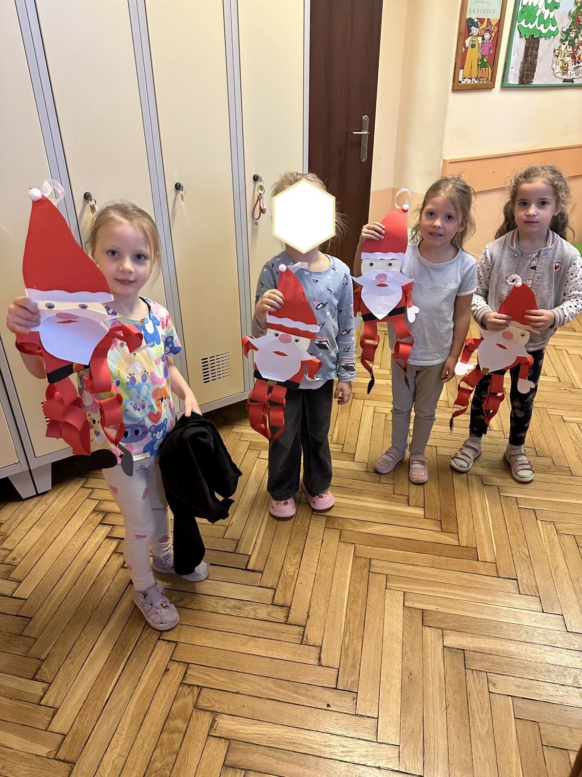 Realizując to zadanie w miesiącu listopadzie i grudniu dzieci wykonywały różnorodne prace plastyczne, różnymi technikami. Były to min.: wachlarz japoński, malowanie farbami jesiennych obrazków, świąteczne ozdoby na drzwi - Mikołaje, itp.