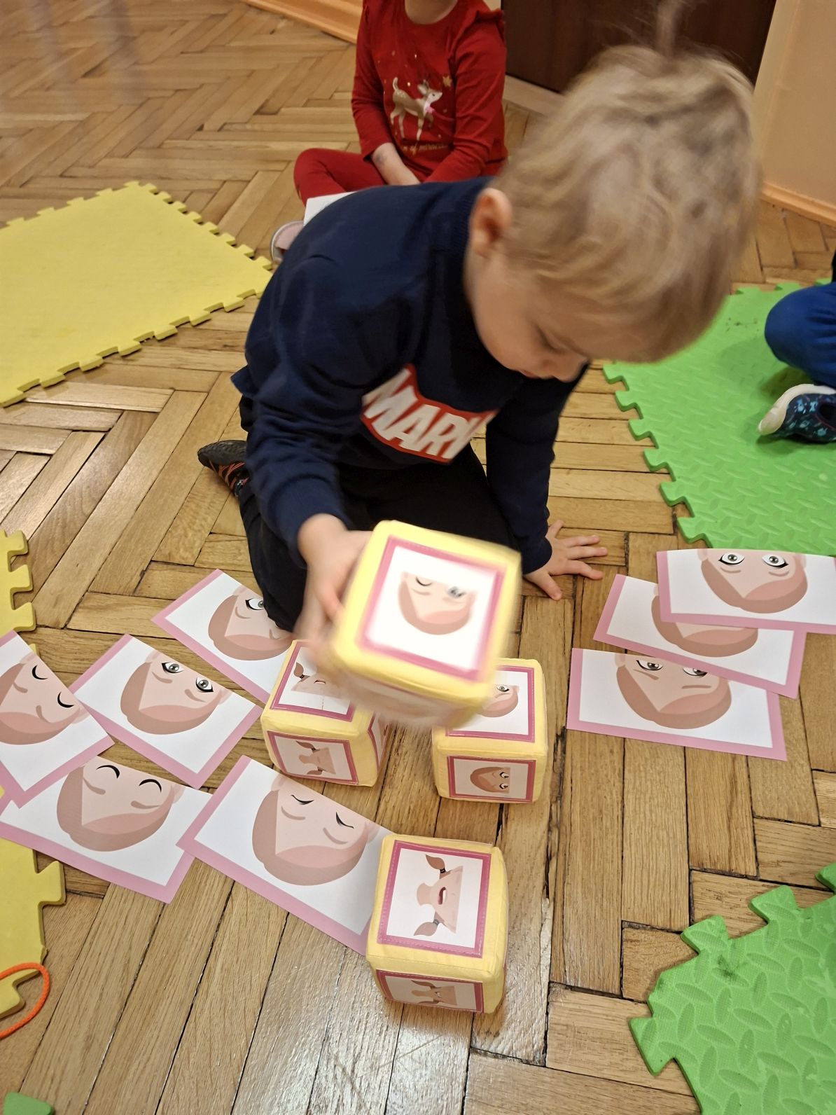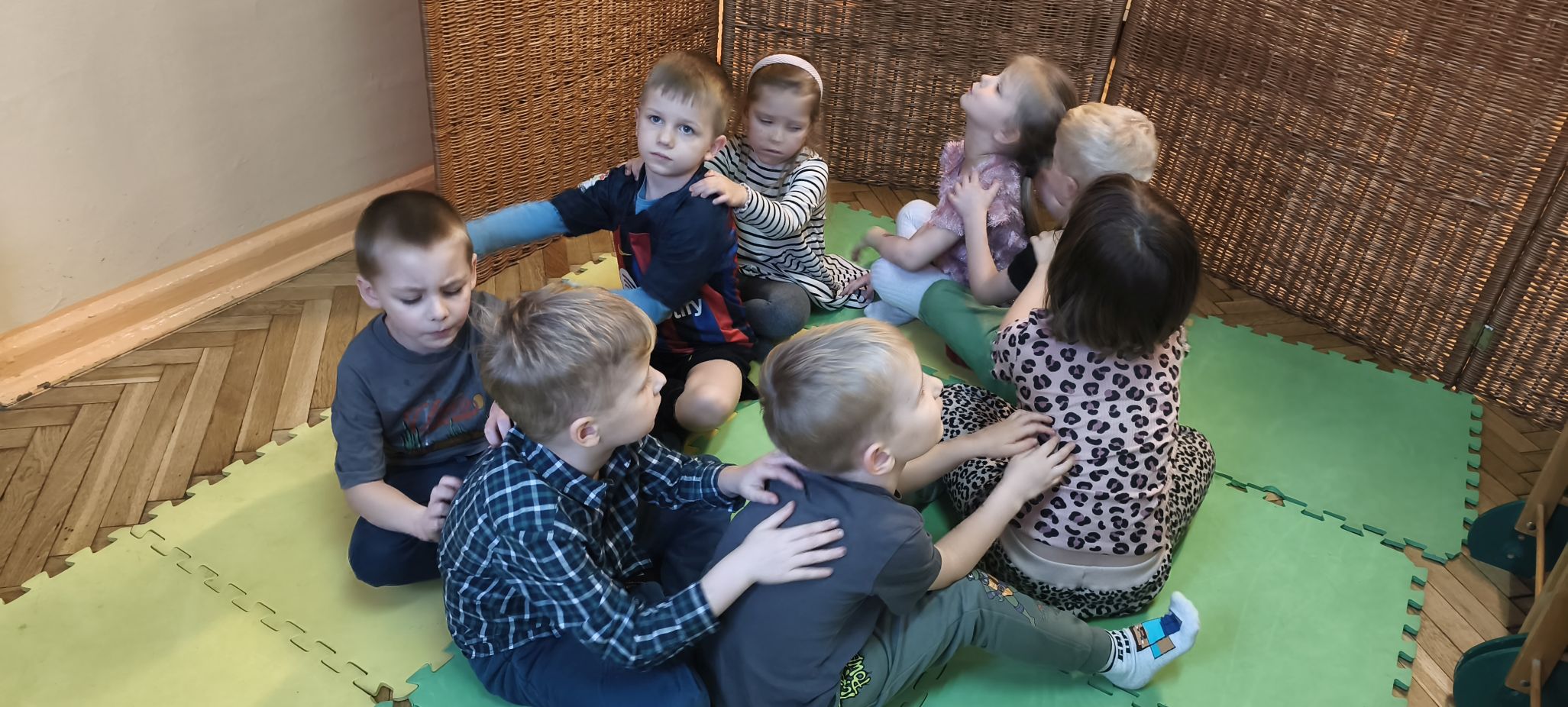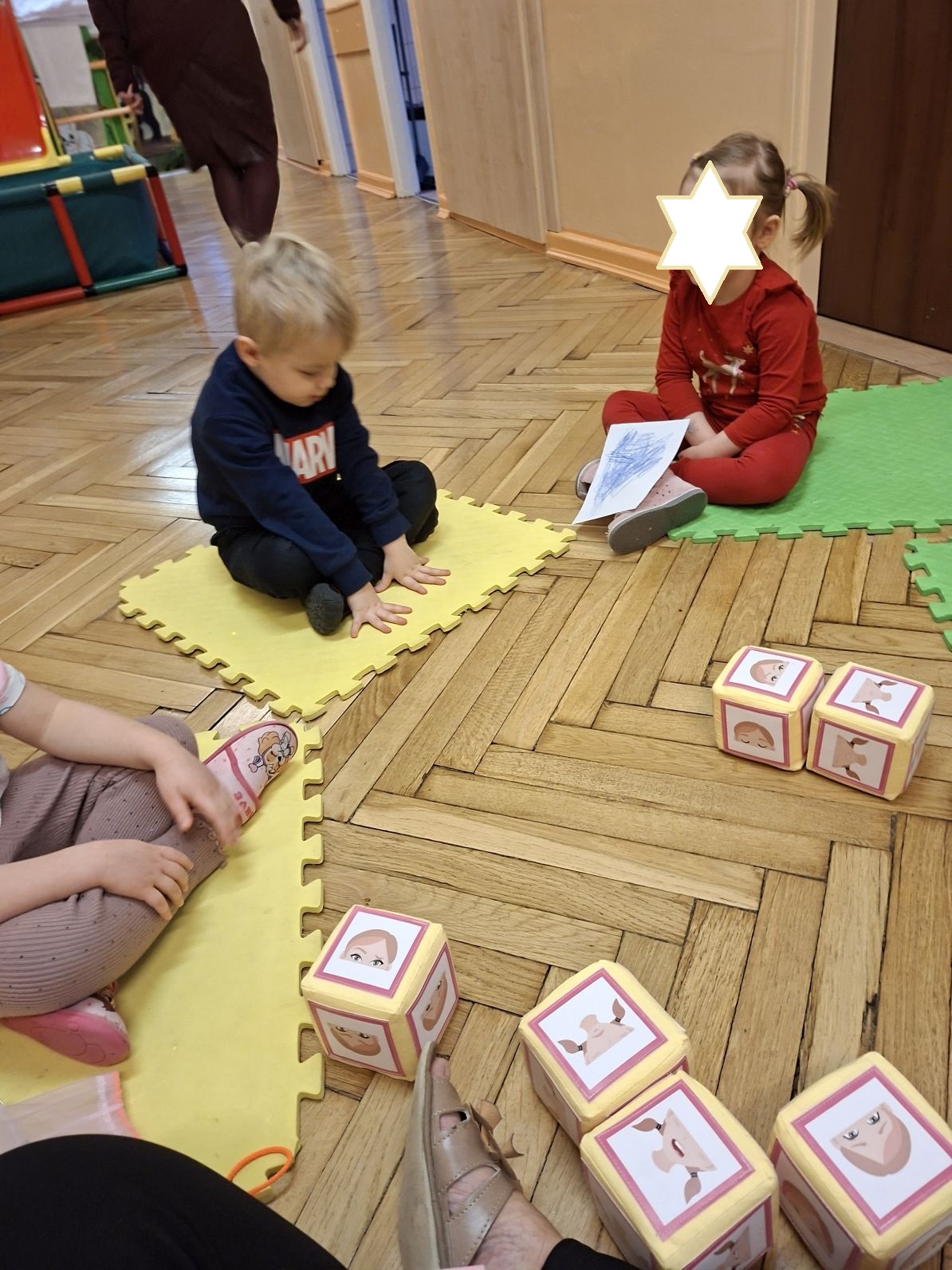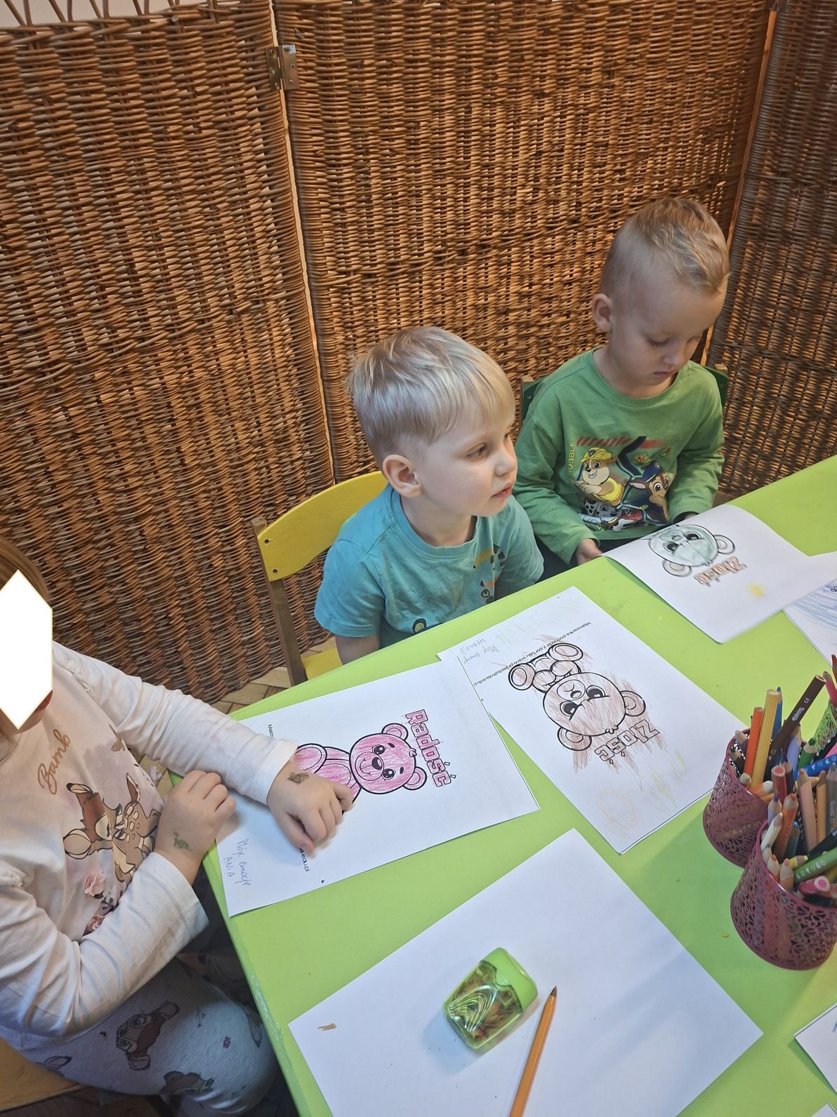 W okresie od rozpoczęcia projektu, tj. od listopada 2025 do końca roku odbyły się zajęcia, podczas których dzieci rozpoznawały i nazywały emocje i uczucia, które odzwierciedlały w formie plastycznej, grały w grę "Minki" polegającej na omawianiu sytuacji z obrazków, wykonywały masażyk twarzy, brały udział w różnych formach relaksacji, itp. Rozróżniały i opisywały zarówno złe, jak i dobre emocje. Przedszkolaki opowiadały również, w jaki sposób można radzić sobie z różnymi stanami emocjonalnymi.